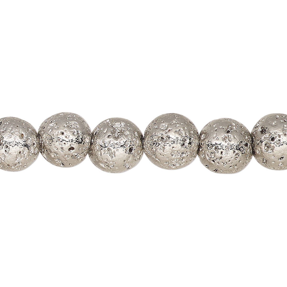 The metallic electrocoating blankets the pits and craters of naturally porous lava rock beads in a vibrant sheen, increasing both durability and visual interest.