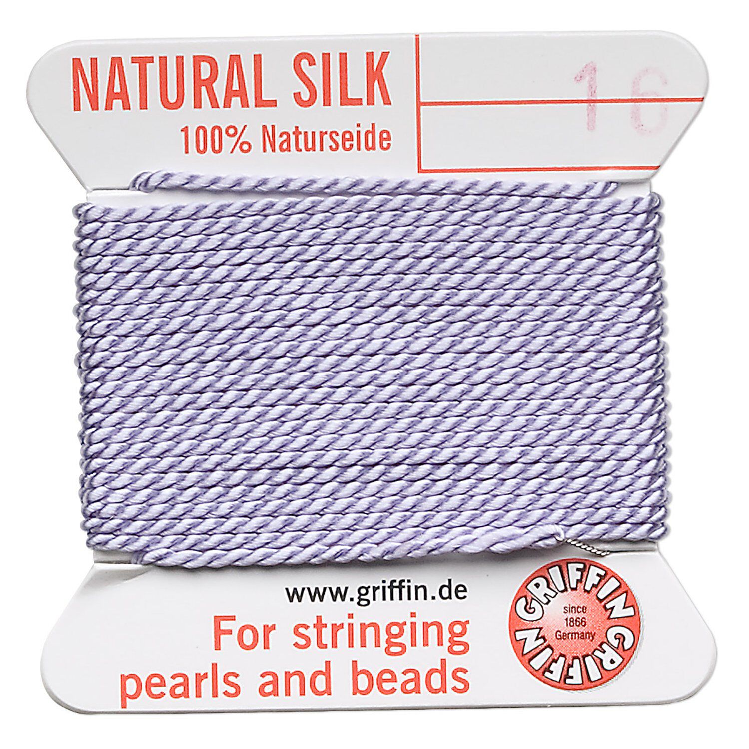 Thread, Griffin, silk, lilac, size #16. Sold per 2-meter card (approximately 78 inches).