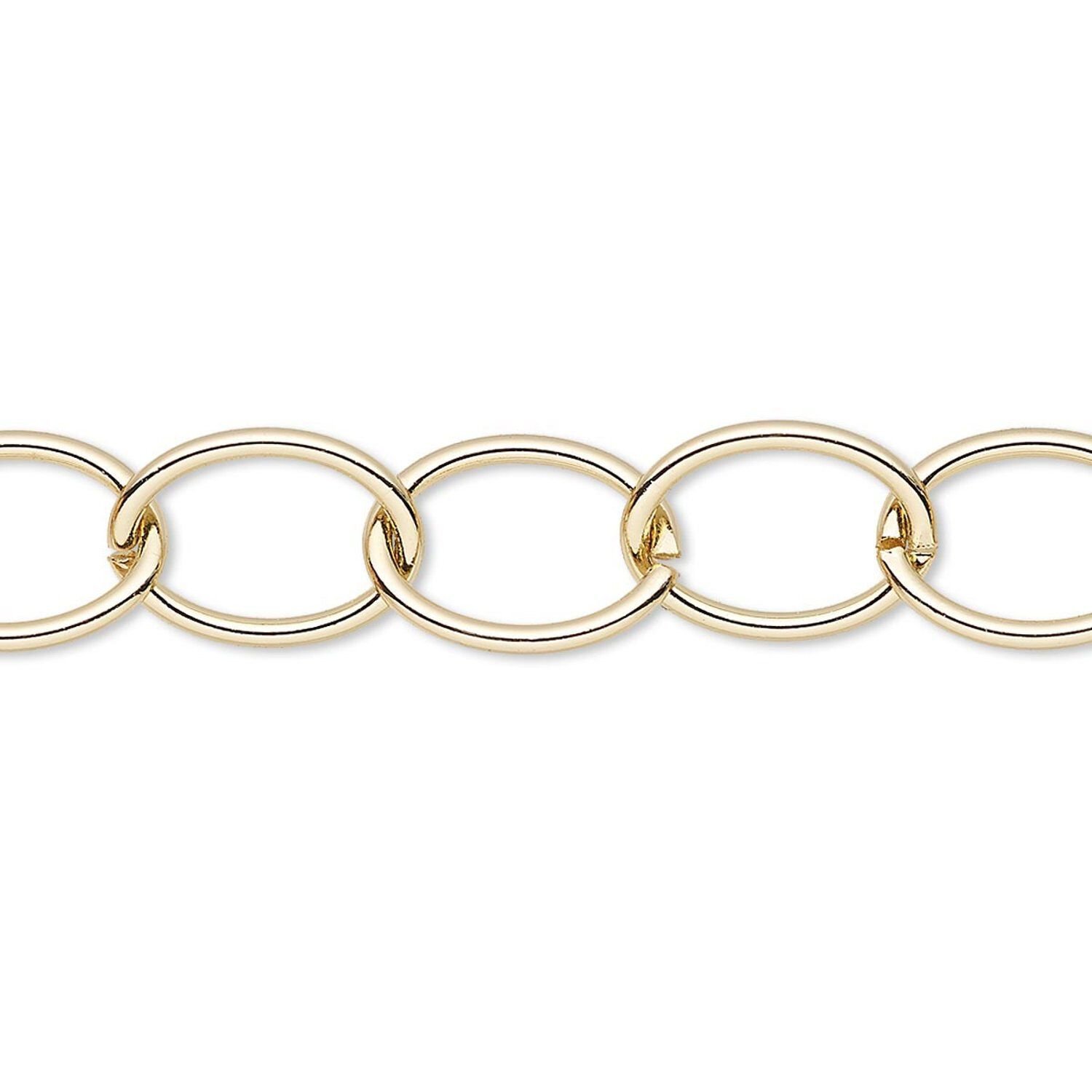 Chain 1pkg1 cable, 10mm oval, gold-finished steel 50 foot unfinished