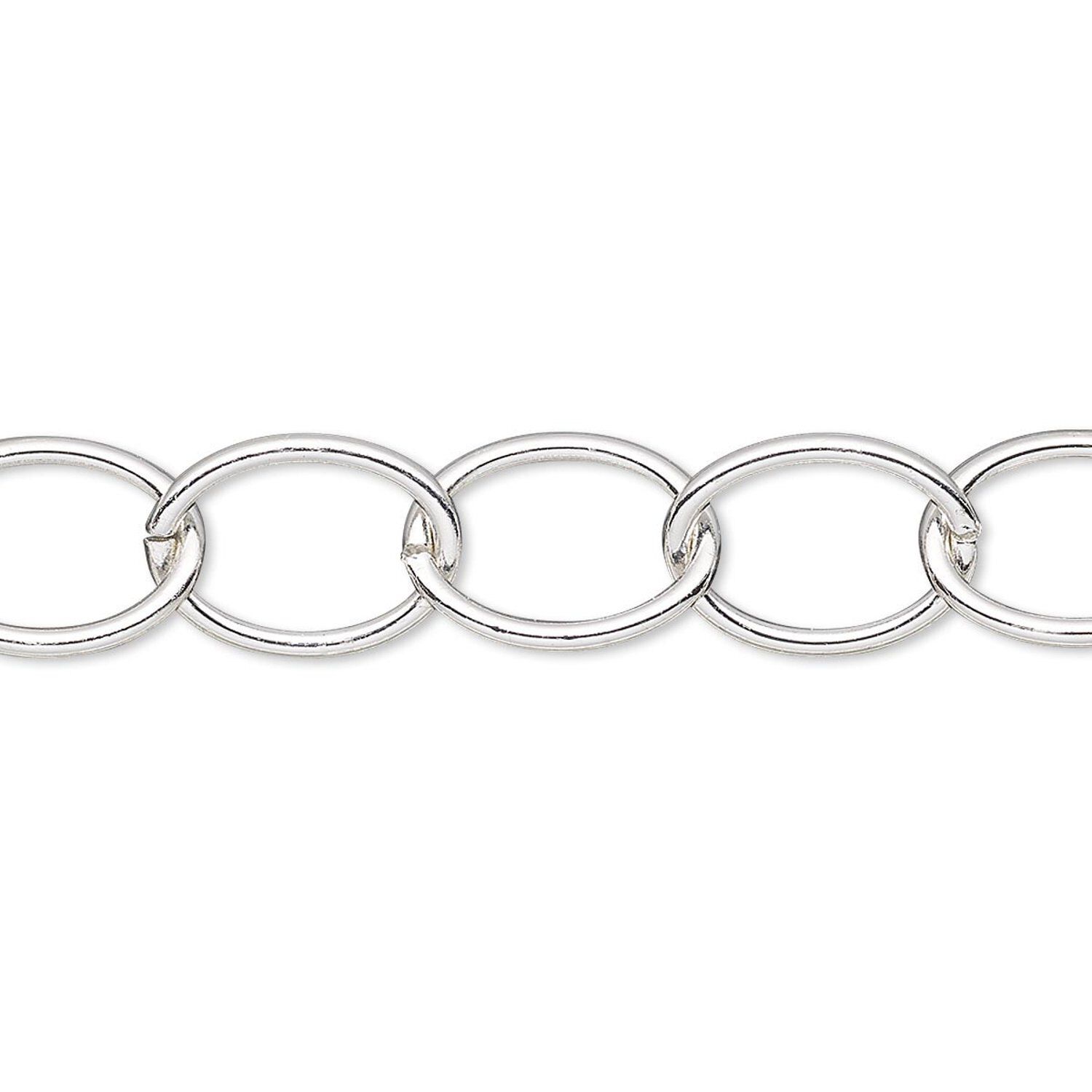 Chain, silver-plated steel, 10mm oval cable. Sold per 50-foot spool.