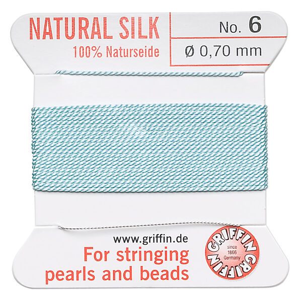 Thread, Griffin, silk, turquoise blue, size #6. Sold per 2-meter card (approximately 78 inches).