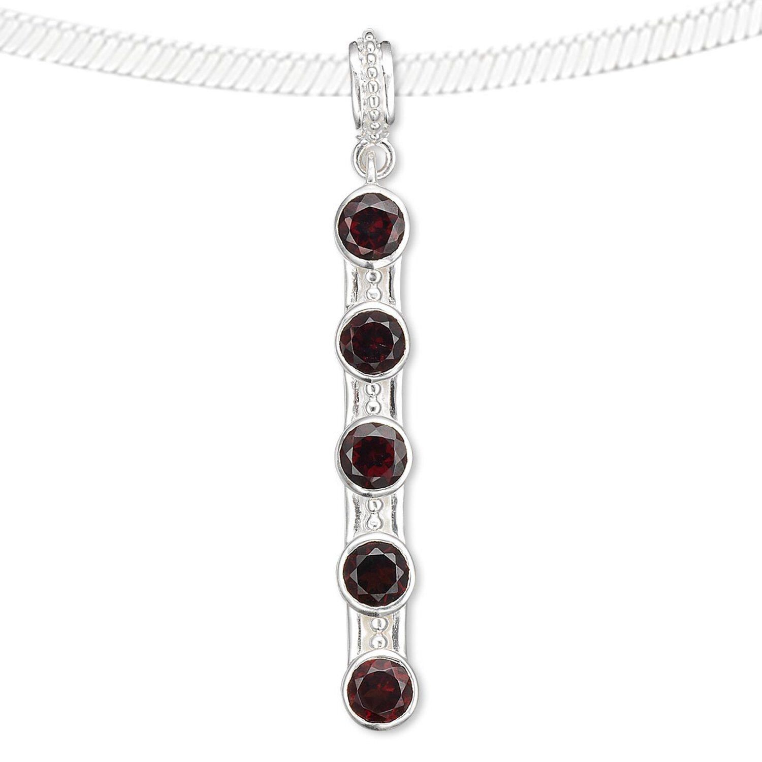 Pendant, garnet (natural) and sterling silver, 41x6mm rectangle with 5mm faceted round. Sold individually.