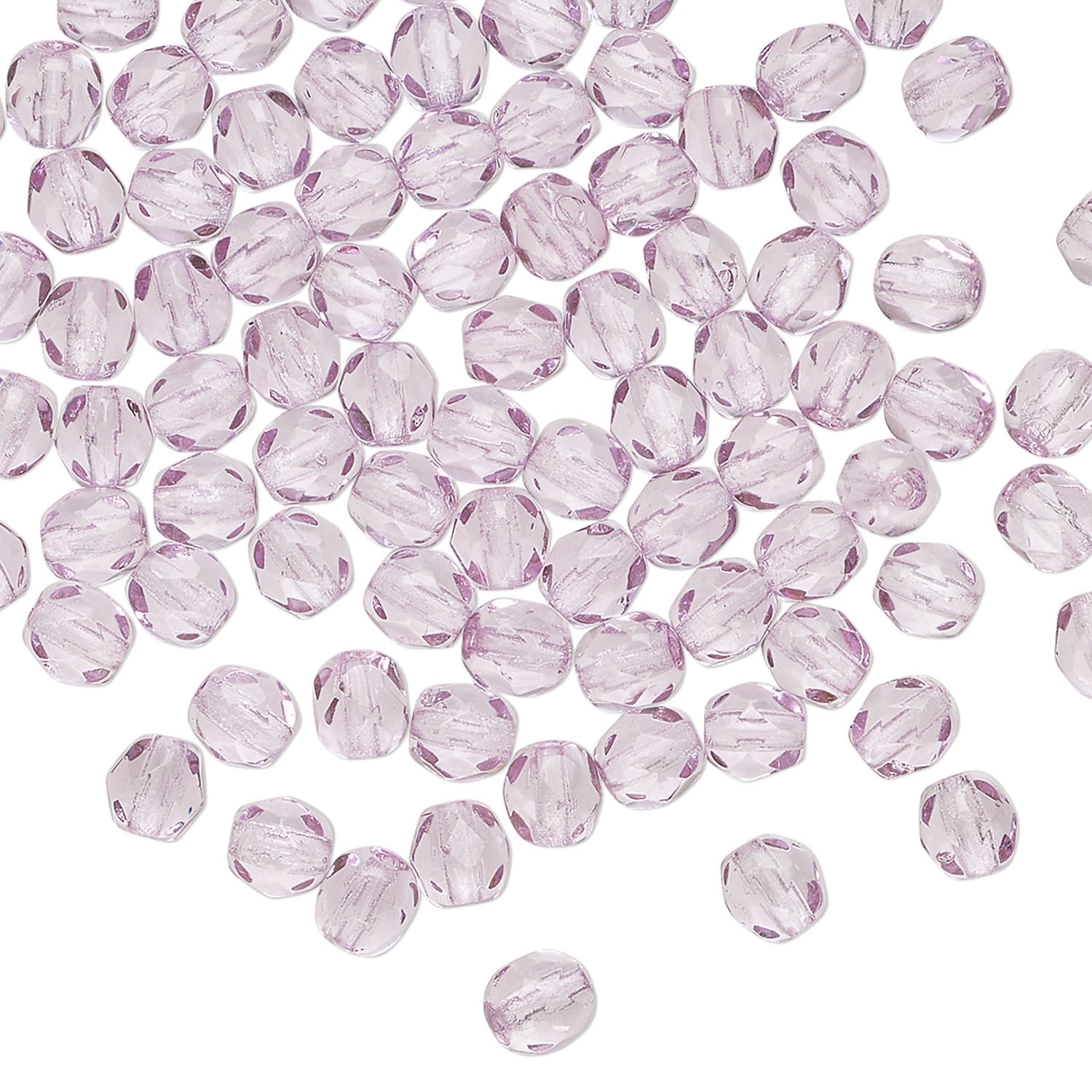 Bead, Czech fire-polished glass 1pkg600, translucent dipped décor lilac, 4mm faceted round.