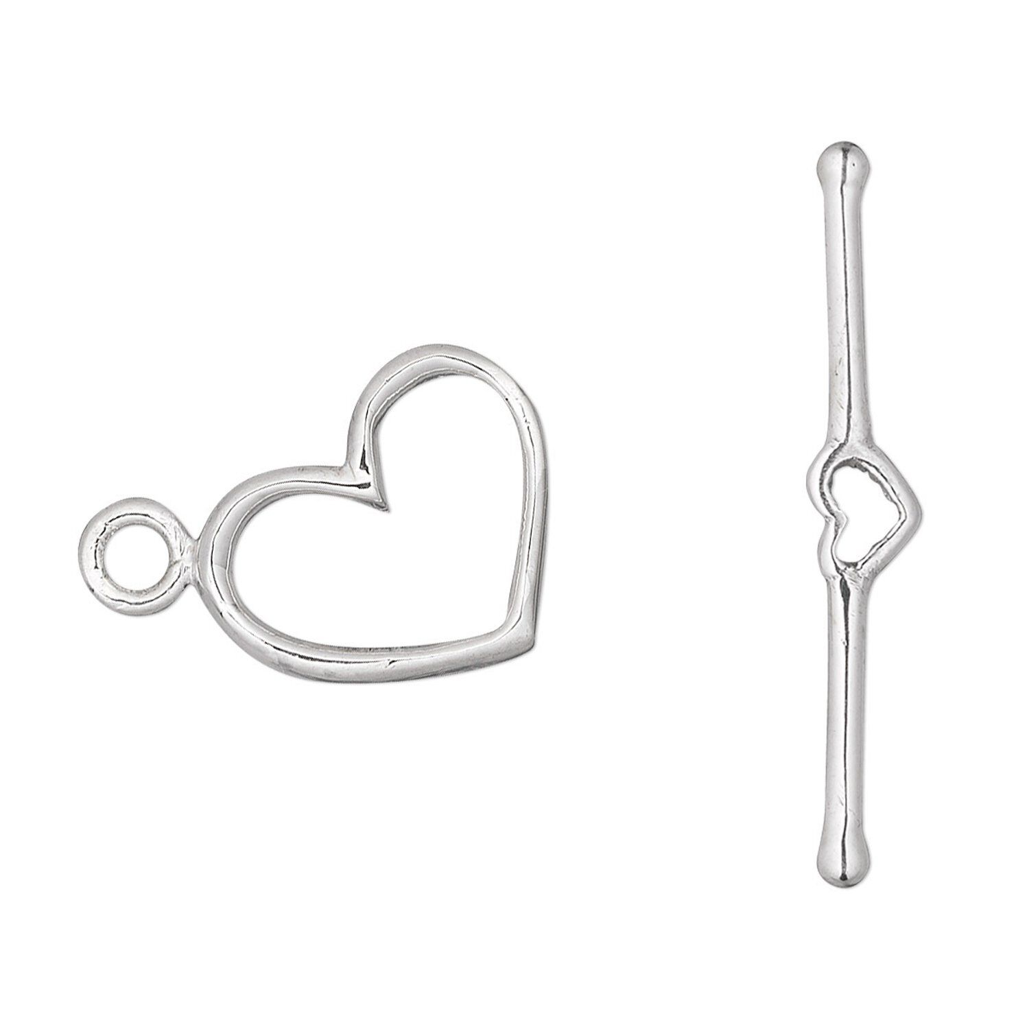 Clasp toggle 1pkg1 sterling silver, 16x13mm heart, 1-strand