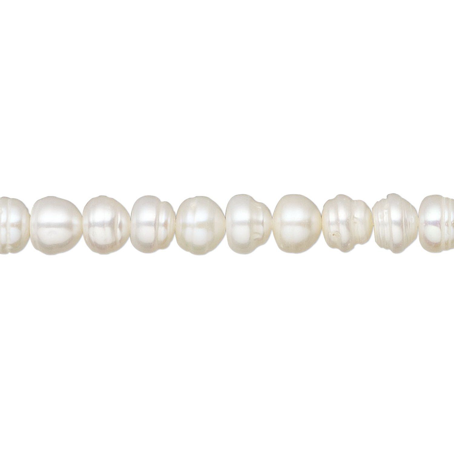 Pearl, cultured freshwater (bleached), white, 5-6mm button, C grade, Mohs hardness 2-1/2 to 4. Sold per 15-1/2" to 16" strand.