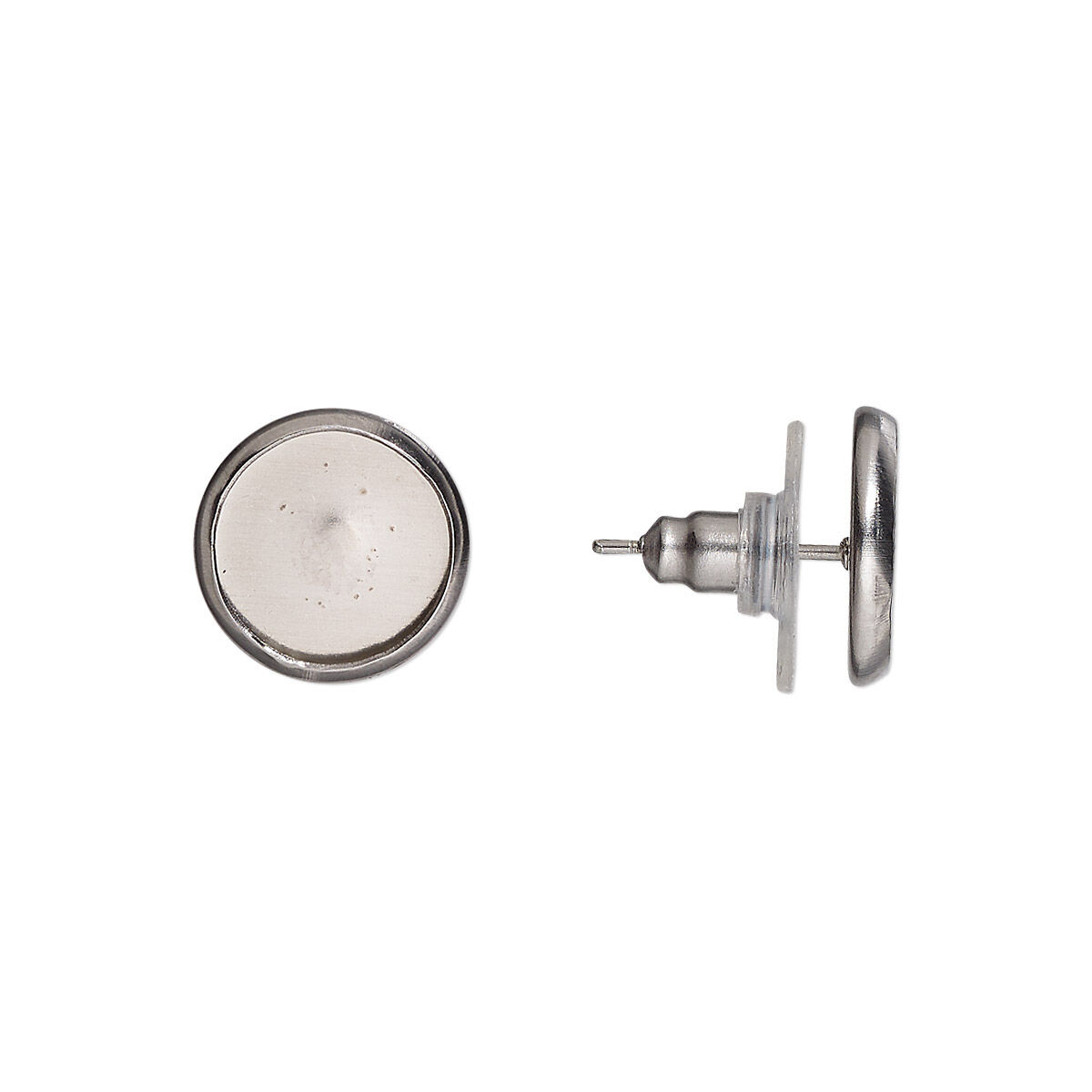 Create low-profile, yet still completely stunning, earrings by gluing any flat-backed component such as cabochons or crystals onto the 10mm round setting of these earstuds. The brightly polished stainless steel base is an ideal metal for high-humidity environments since it resists rust, tarnish, corrosion and oxidation. Comfort clutch earnuts included.