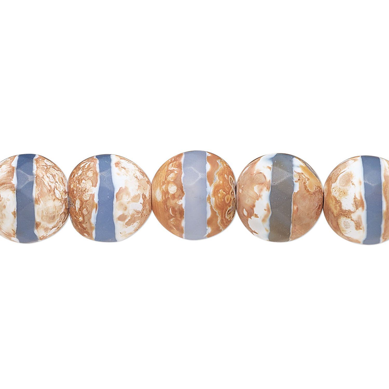 Blue brown agate 1pkg1, matte faceted round bead 8 inch 9.5-10mm
