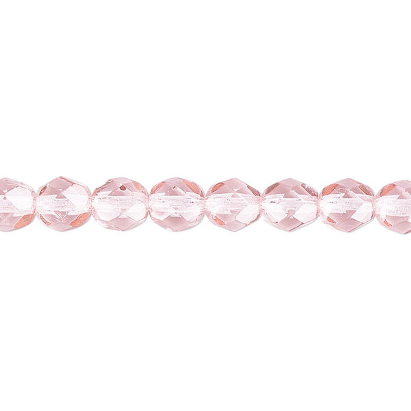 Bead 1pkg1200 Czech fire-polished dipped décor glass, translucent pink, 6mm faceted round. 1 mass.