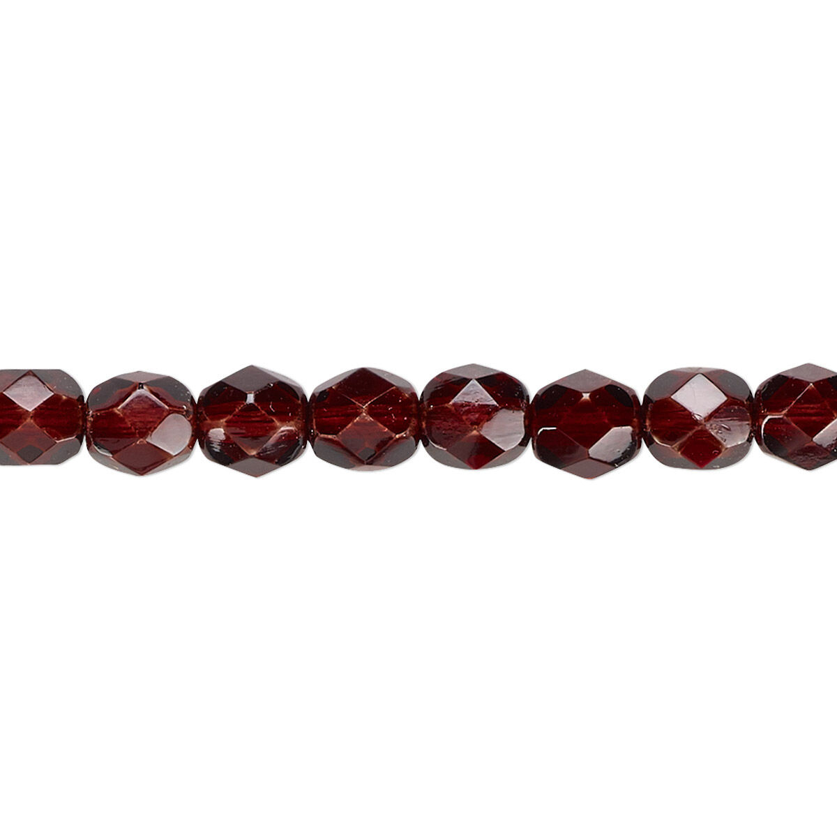Bead, Czech fire-polished dipped décor glass, brown, 6mm faceted round. Sold per 15-1/2" to 16" strand, approximately 65 beads.