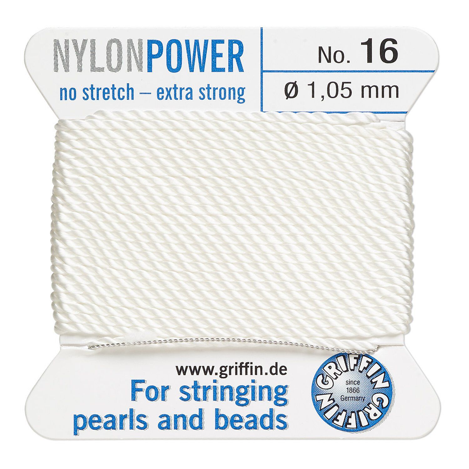 Thread, Griffin, nylon, white, size #16. Sold per 2-meter card (approximately 78 inches).
