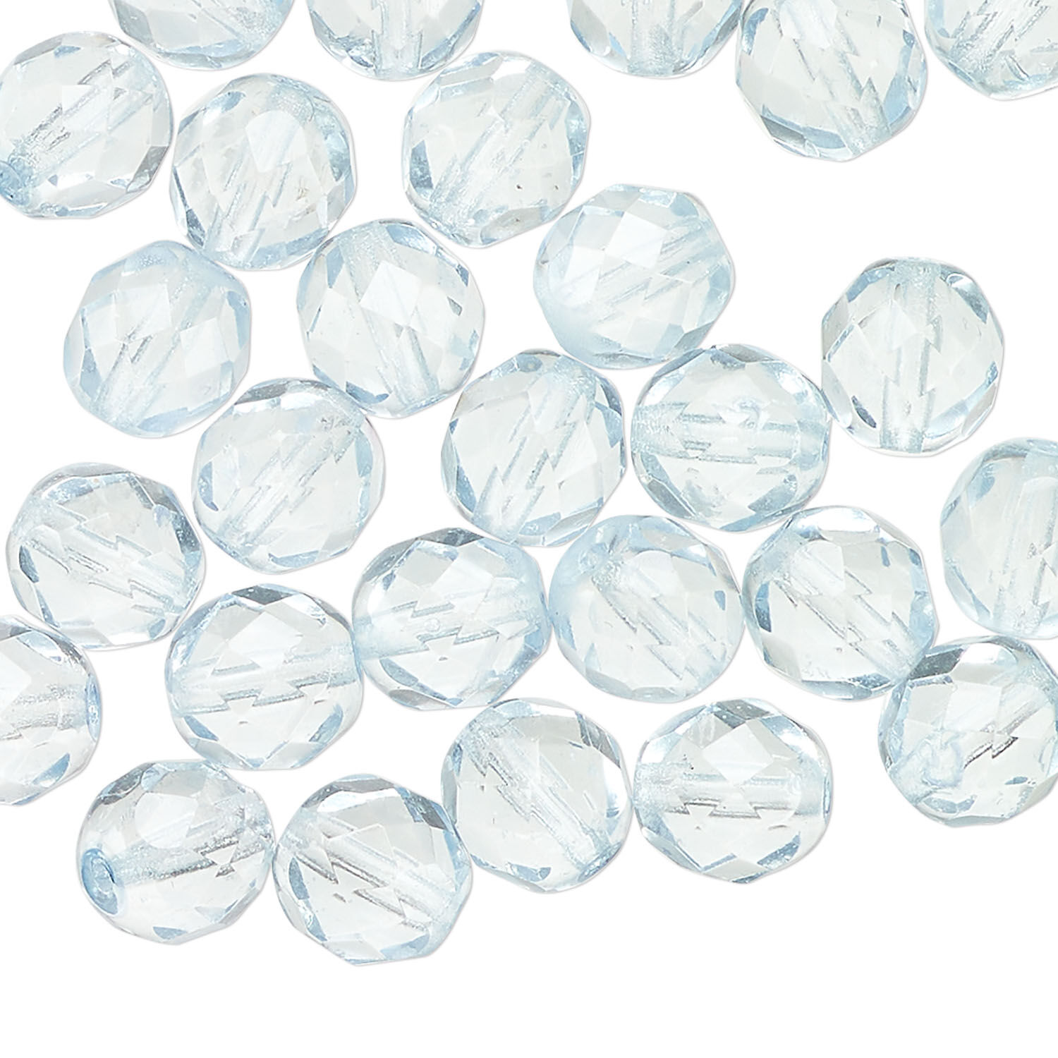 Bead 1pkg50, Czech fire-polished dipped décor glass, light blue, 8mm faceted round.