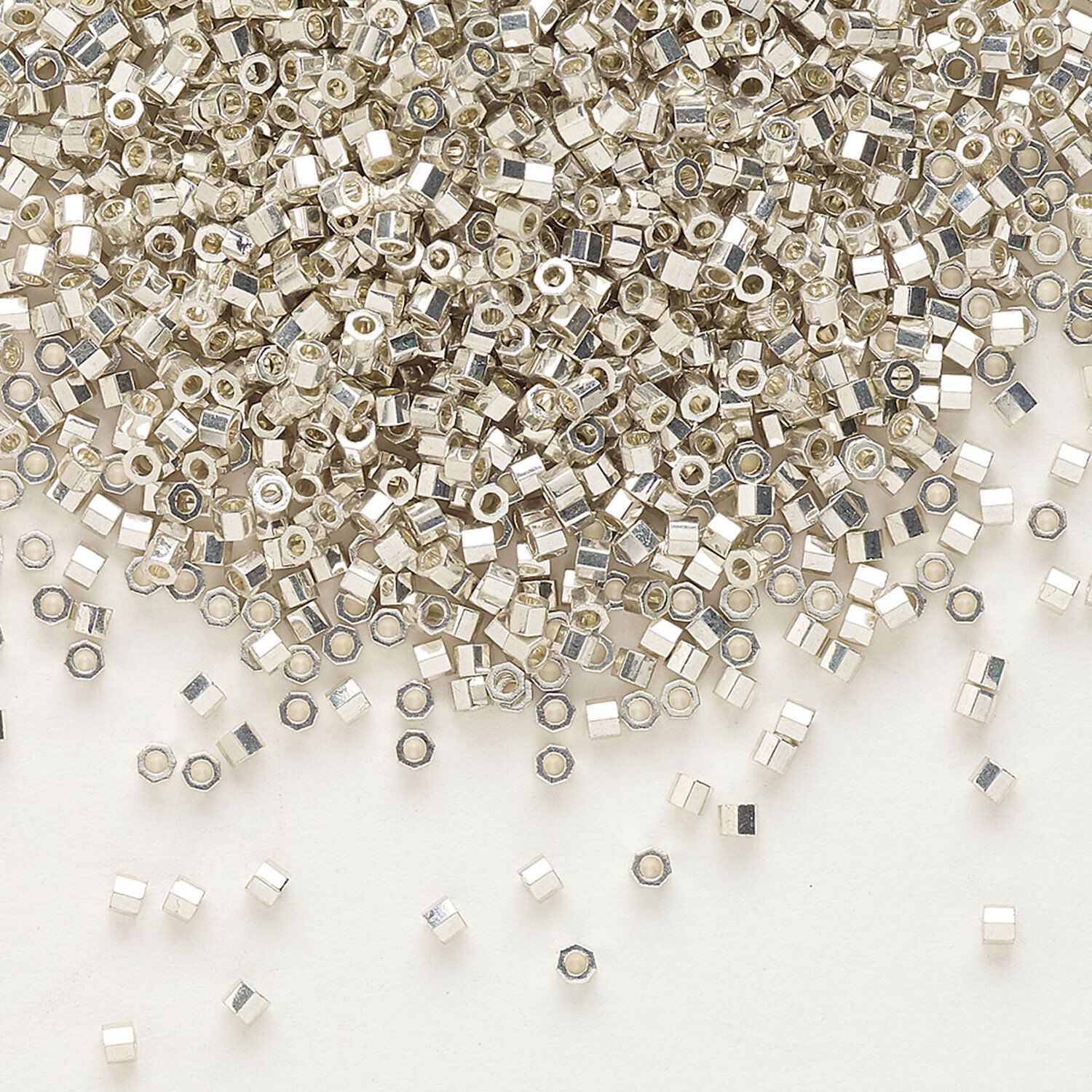 Seed bead, Delica®, glass, pkg/250g, #11 cut, opaque galvanized silver (DBC-0035).