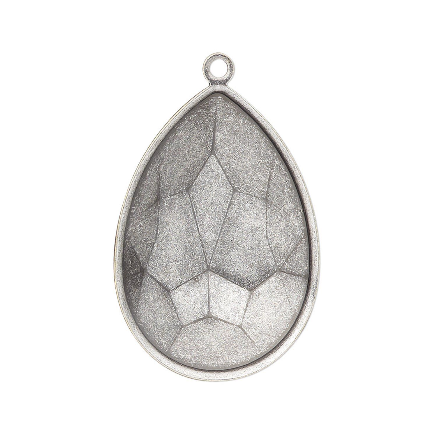 Focal, Almost Instant Jewelry®, antique silver-plated brass, 32x22.5mm pear with 30x20mm pear setting. Sold per pkg of 2.