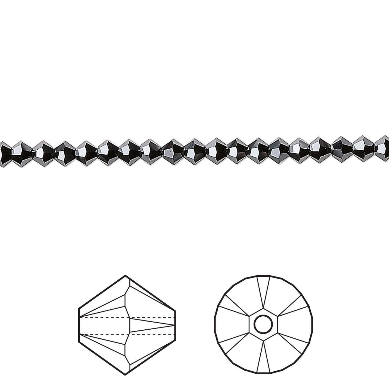 Bead 1440pk jet hematite 2X, Swarovski® 3mm XILION bicone 5328