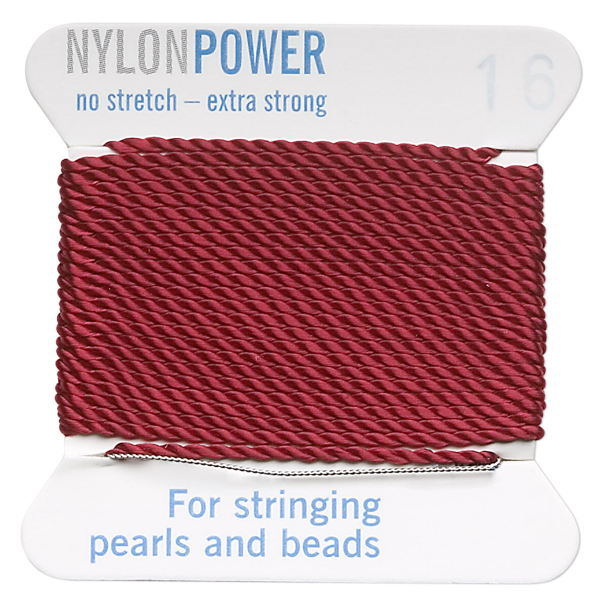 Thread, Griffin, nylon, garnet red, size #16. Sold per 2-meter card (approximately 78 inches).