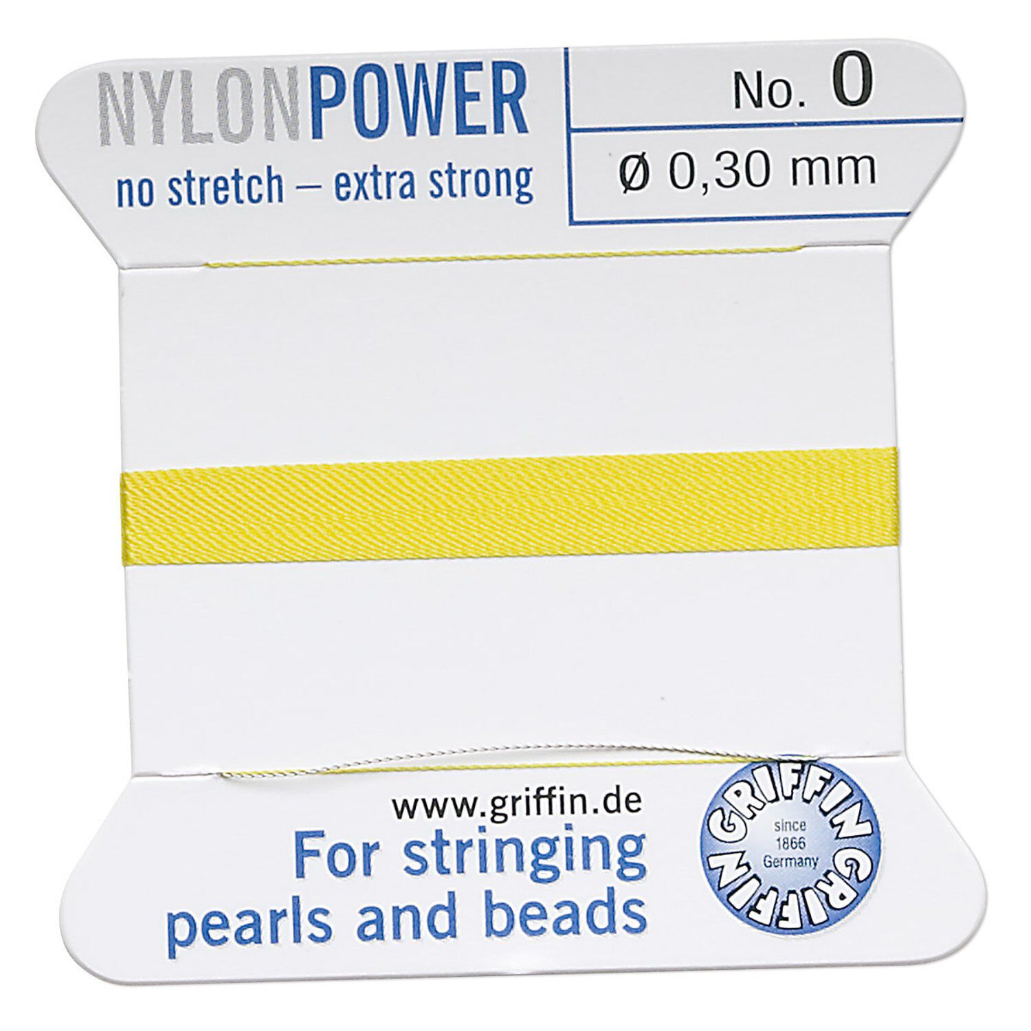 Thread, Griffin, nylon, yellow, size #0. Sold per 2-meter card (approximately 78 inches).