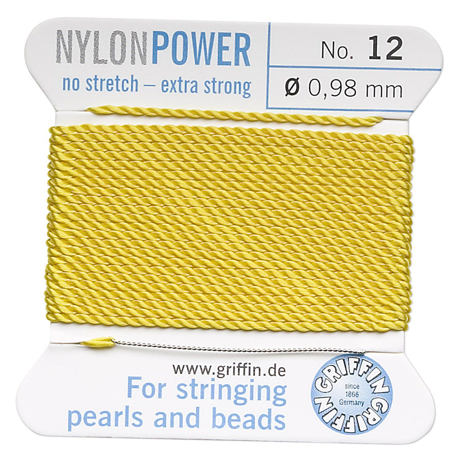 Thread, Griffin, nylon, yellow, size #12. Sold per 2-meter card (approximately 78 inches).