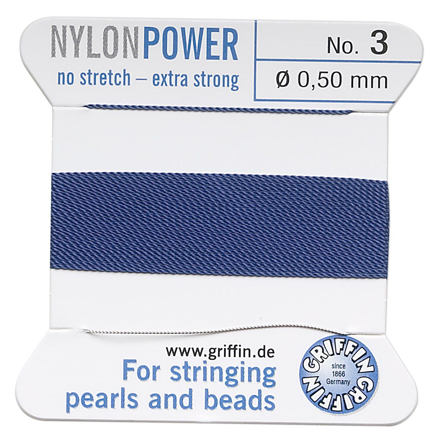 Thread, Griffin, nylon, blue, size #3. Sold per 2-meter card (approximately 78 inches).