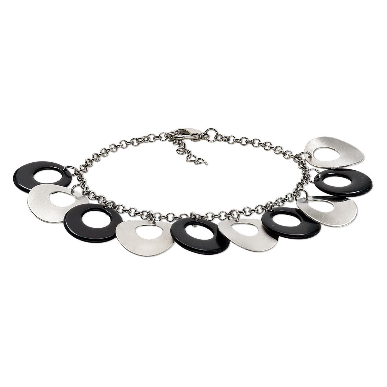 Bracelet includes five acrylic round go-gos and five brushed steel go-gos.