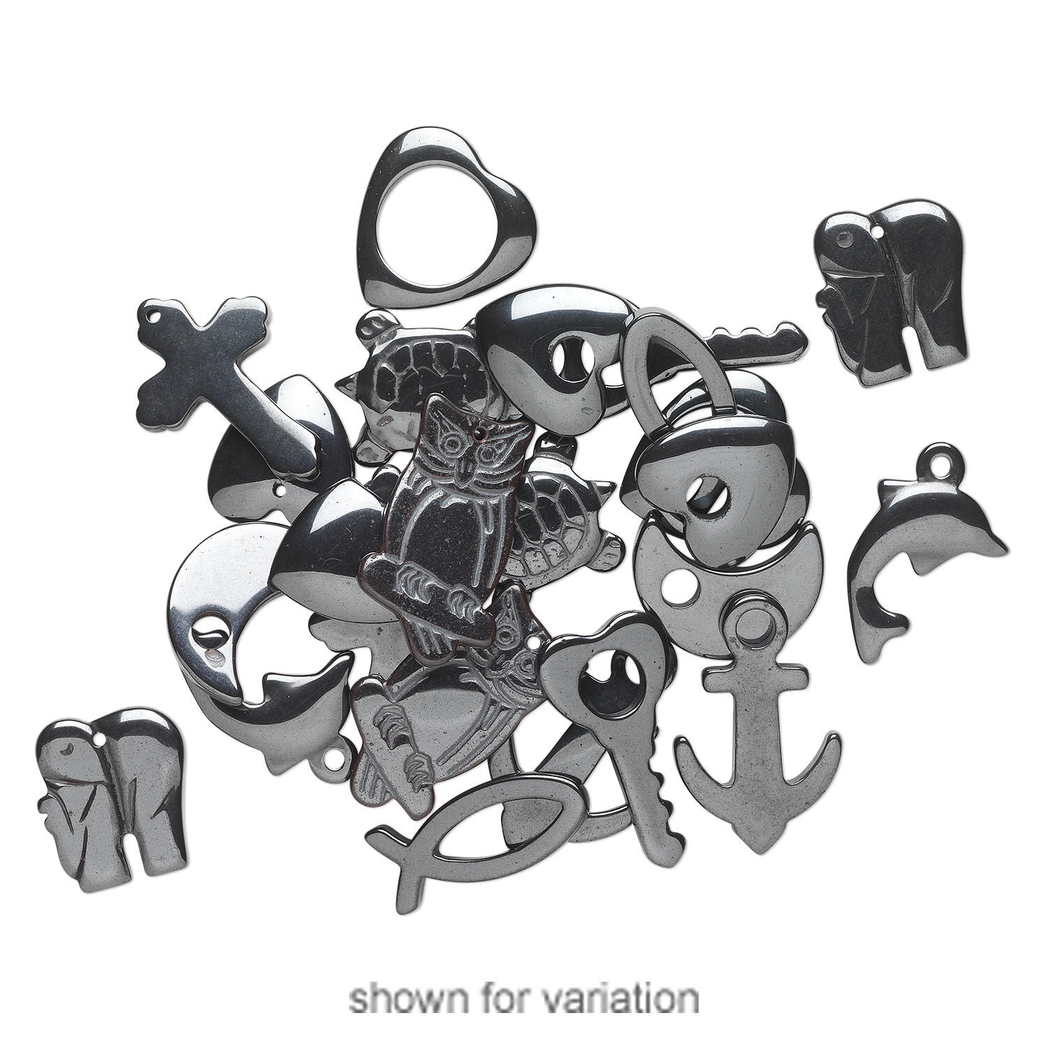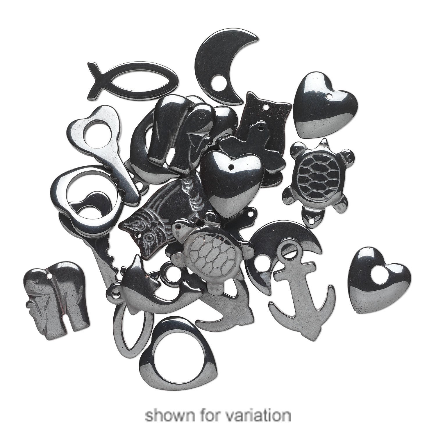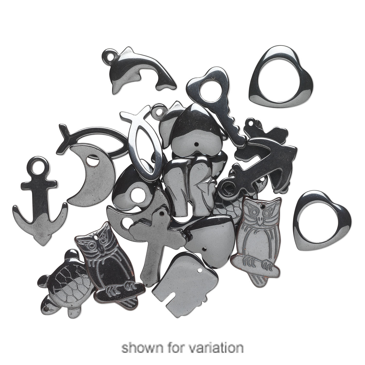 Small and large stringing holes make these pendants versatile additions to your line. Shapes can include heart, key, anchor, turtle, dolphin and more. Colors, shapes and sizes may vary in each lot.