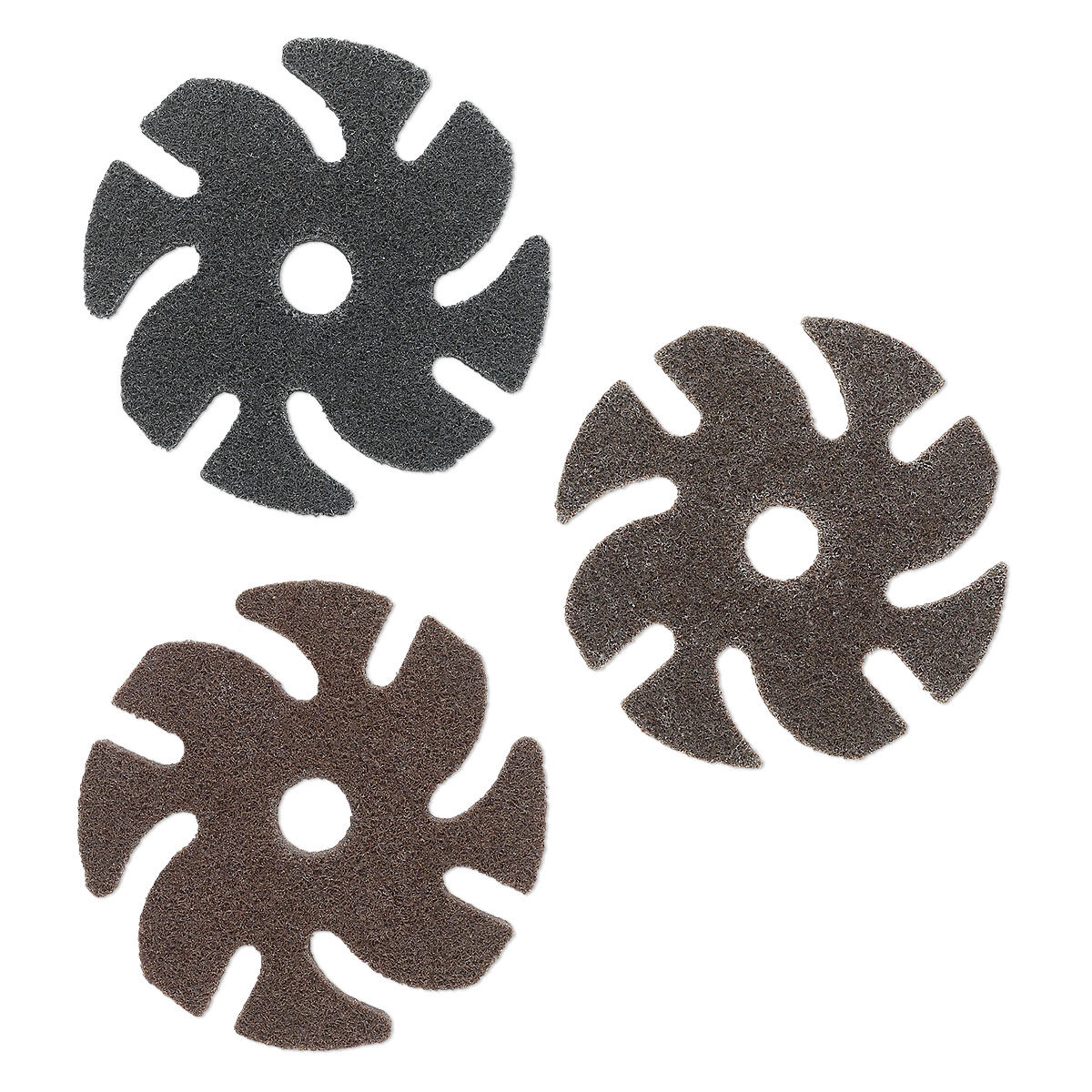 Abrasive disc, 3M™ Scotch-Bright™ EXL Unitized, plastic, brown, fine to coarse grit, 3-inch replacement abrasive disc for Jooltool™. Sold per set of 3.