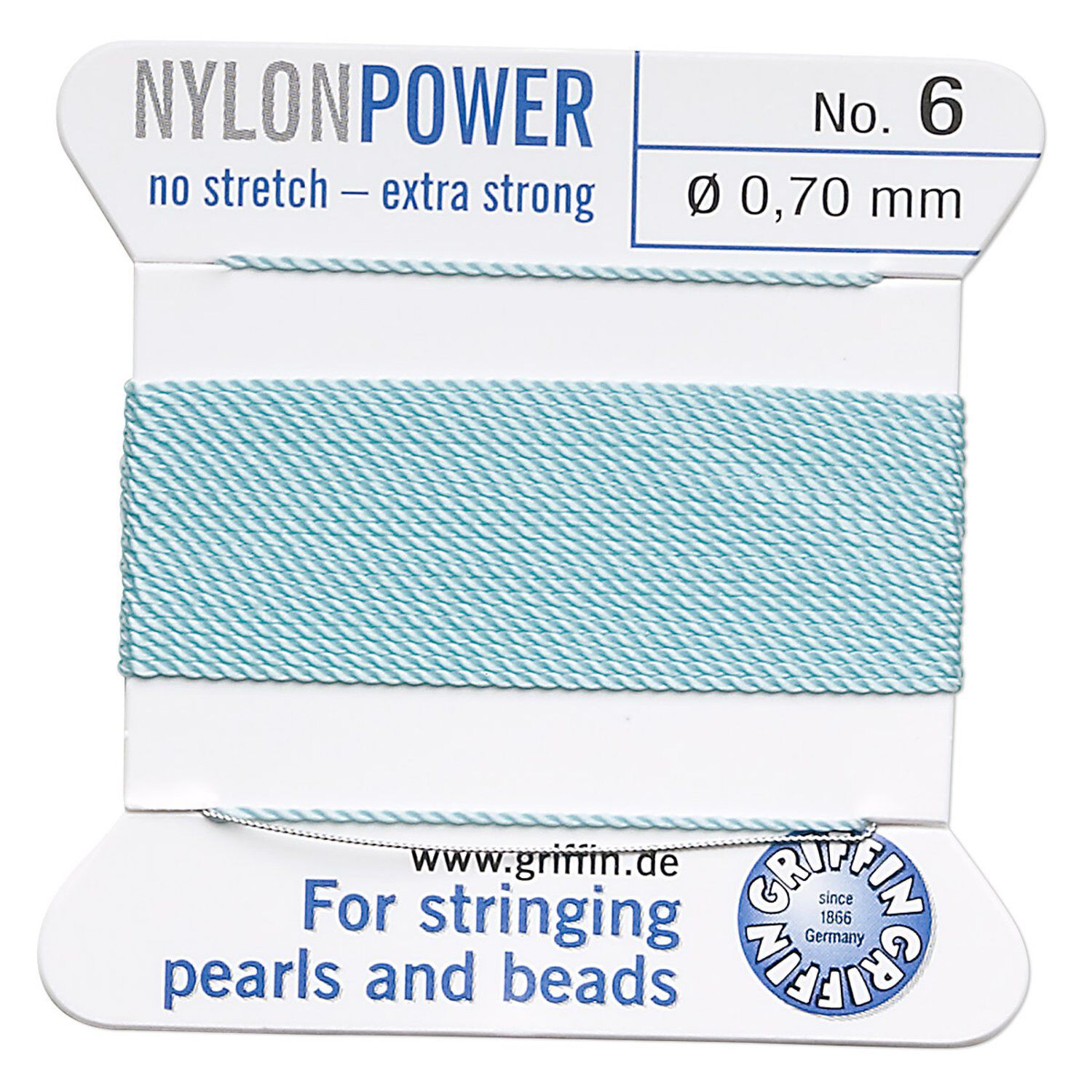 Thread, Griffin, nylon, turquoise blue, size #6. Sold per 2-meter card (approximately 78 inches).