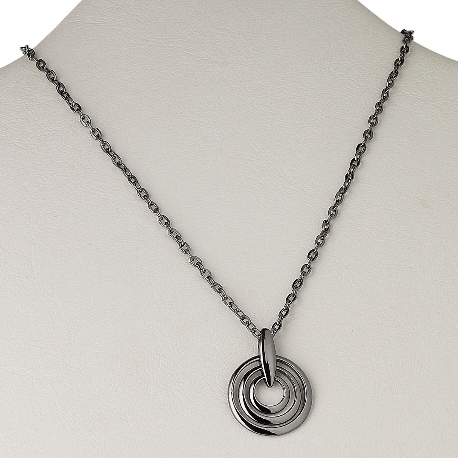 Necklace, gunmetal-plated brass, 27mm triple-circle, 16 inches with 3-inch extender chain and lobster claw clasp. Sold individually.