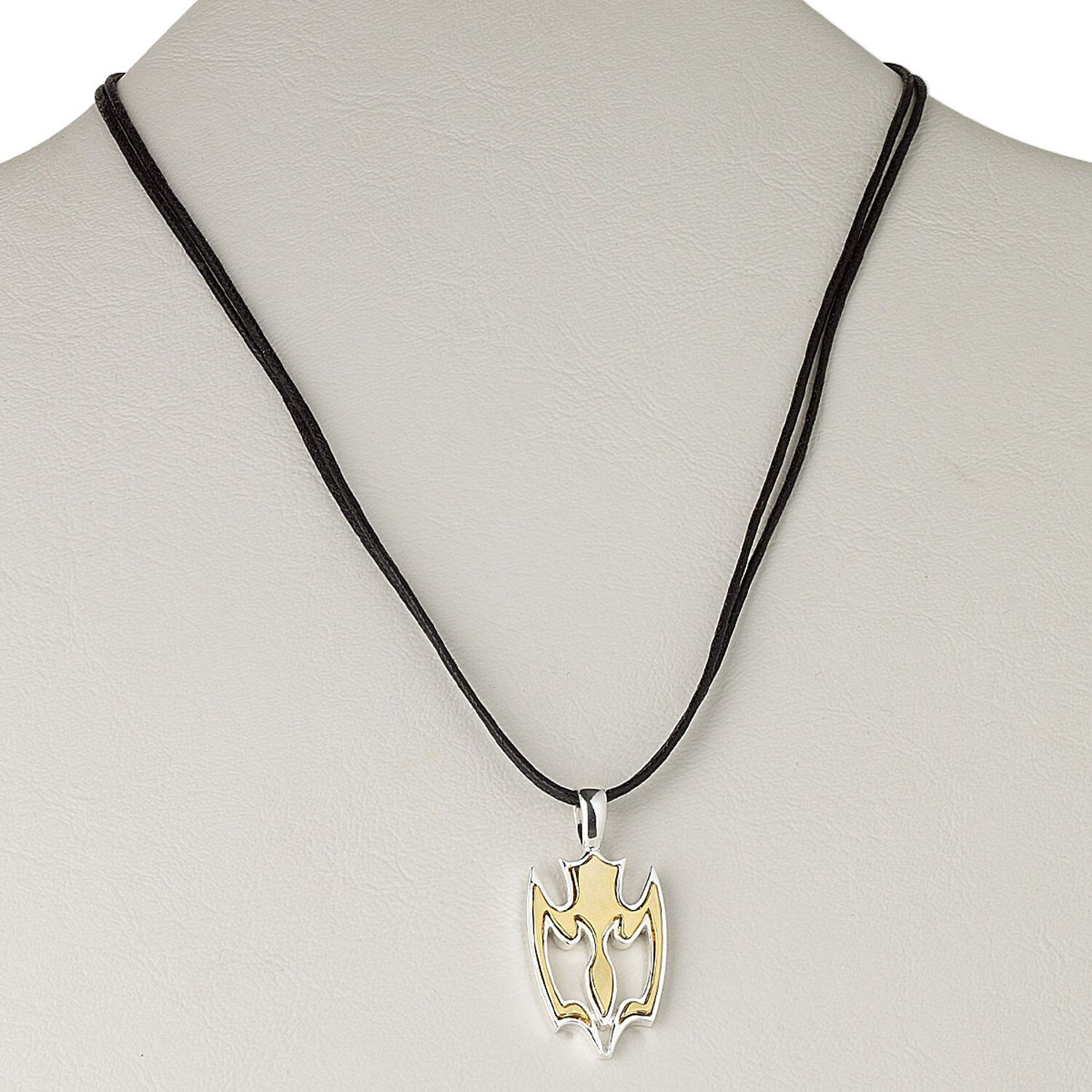 Necklace, 2-strand, waxed cotton cord with gold- and silver-plated brass, black, 29x20mm bat, 16 inches with 3-inch extender chain and lobster claw clasp. Sold individually.