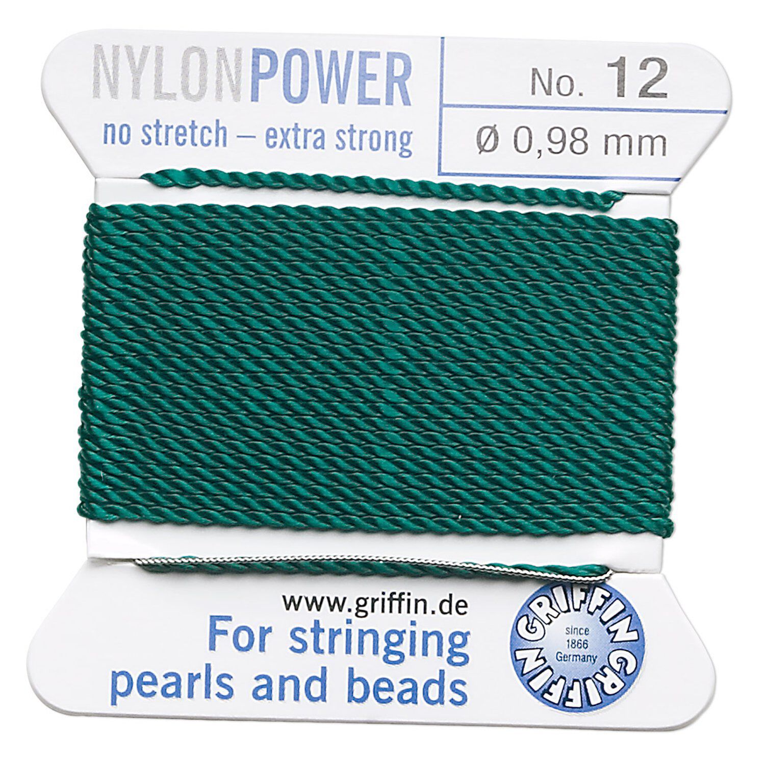 Thread, Griffin, nylon, green, size #12. Sold per 2-meter card (approximately 78 inches).