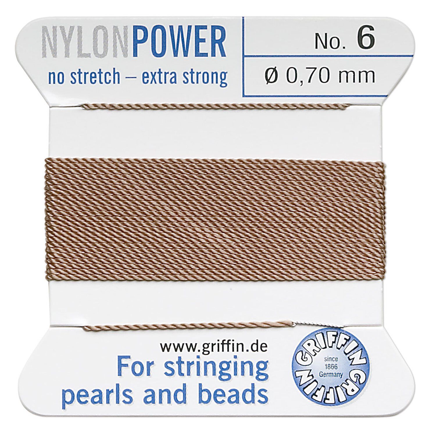 Thread, Griffin, nylon, beige, size #6. Sold per 2-meter card (approximately 78 inches).