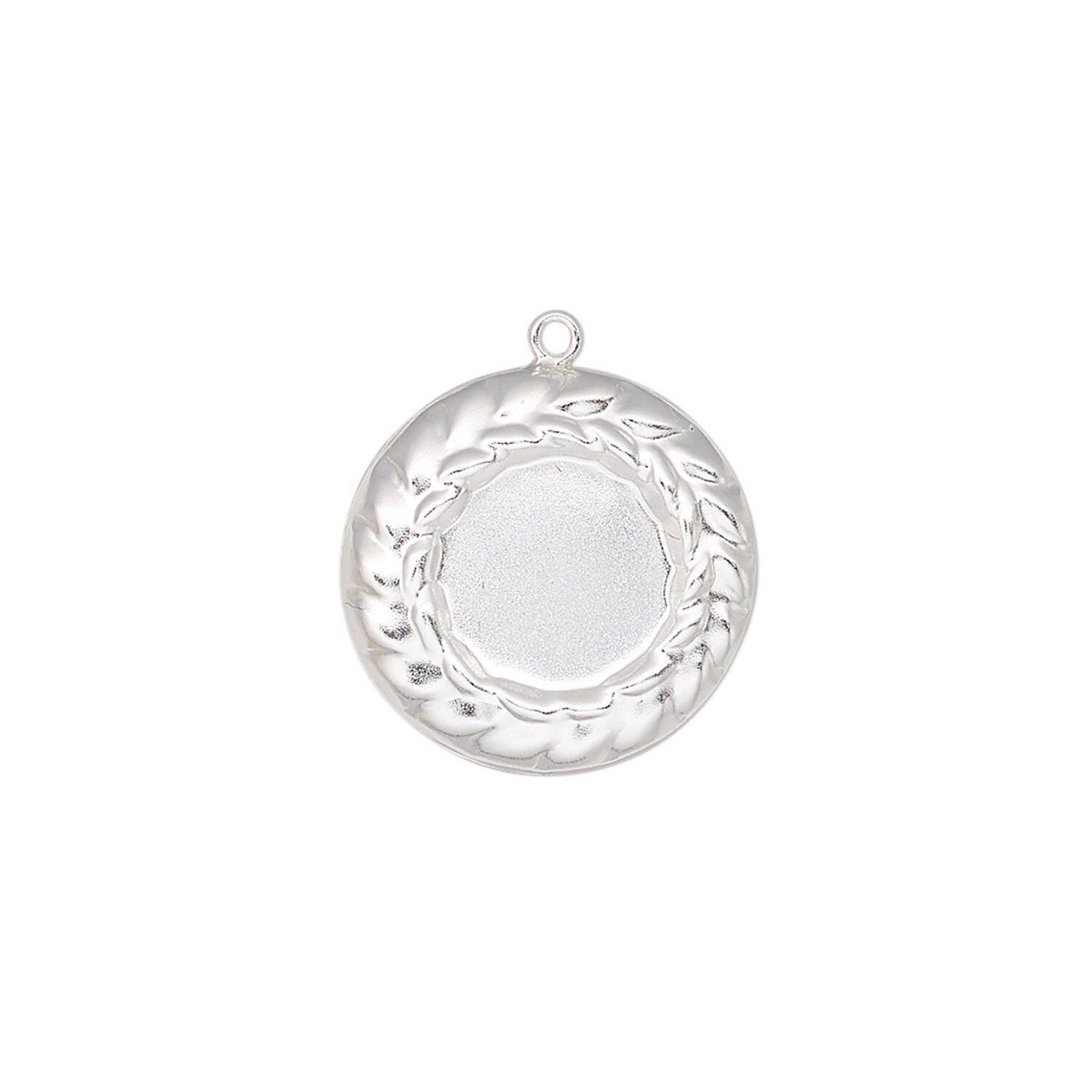Drop, sterling silver, 17mm single-sided round with braided edges and 10mm round setting. Sold individually.