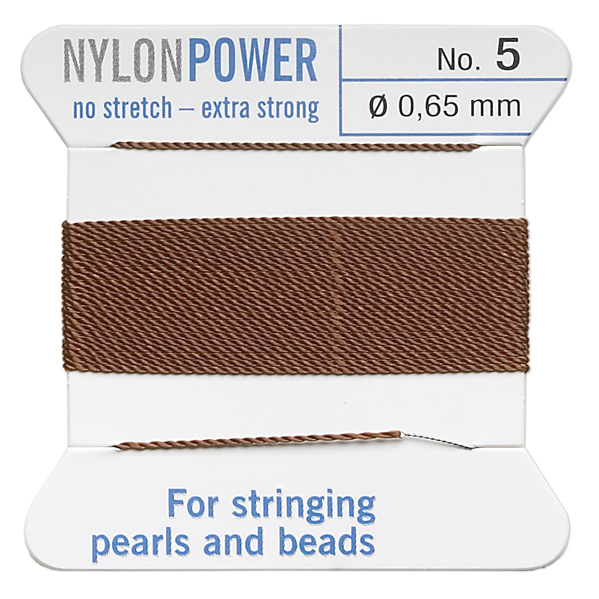 Thread, Griffin, nylon, brown, size #5. Sold per 2-meter card (approximately 78 inches).