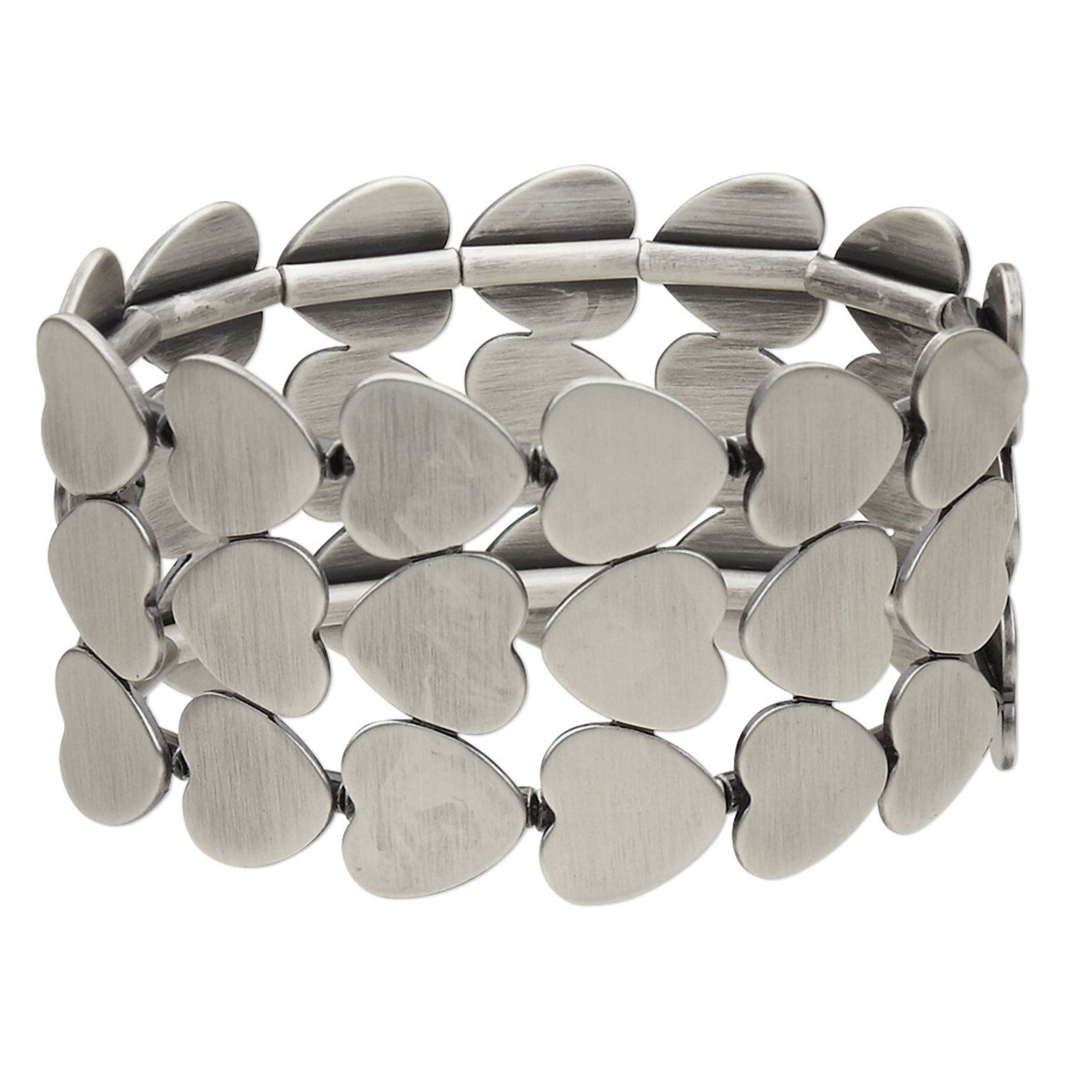 Bracelet, stretch, antiqued silver-plated steel, 41mm wide with 3-row heart, 7-1/2 inches. Sold individually.