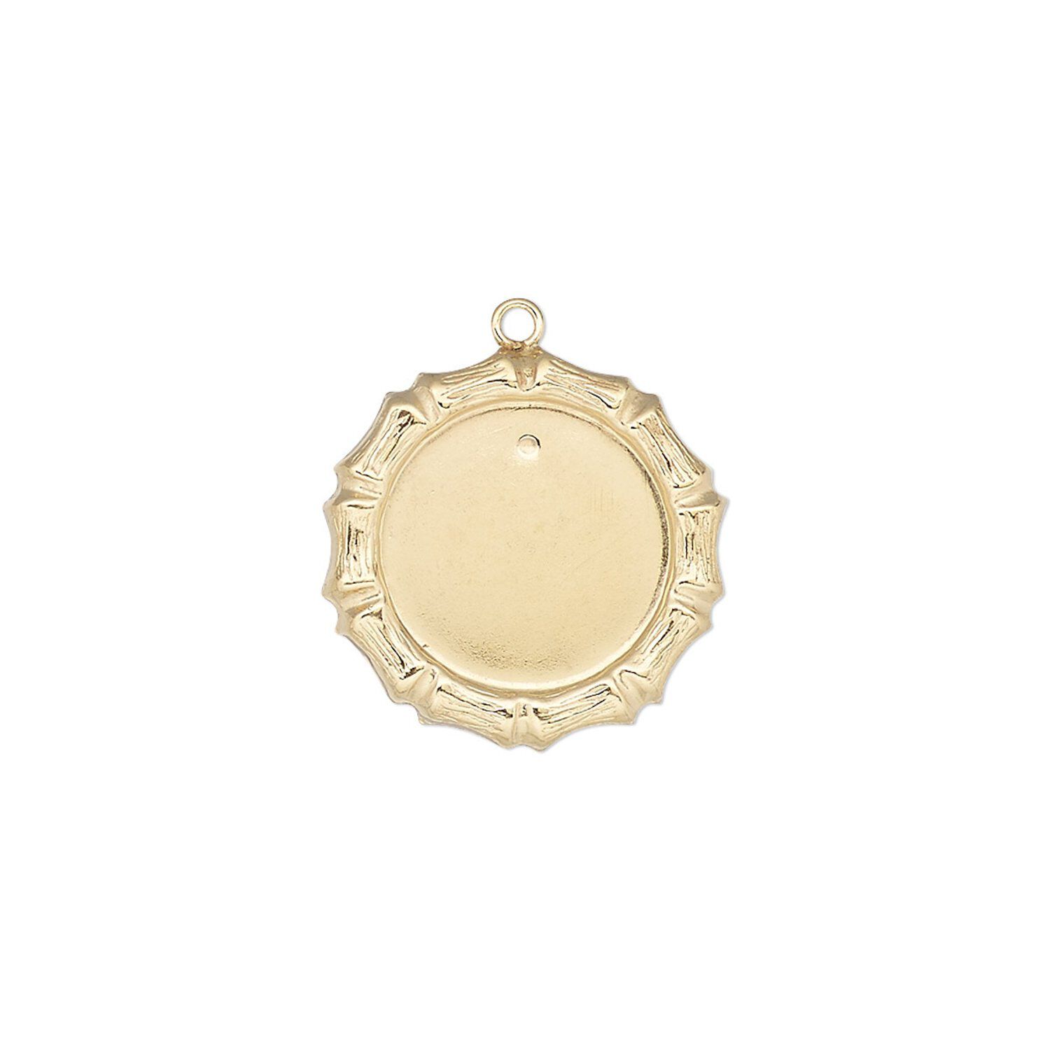 Drop, 14Kt gold-filled, 17mm single-sided round with bamboo edge design and 12mm round setting. Sold individually.