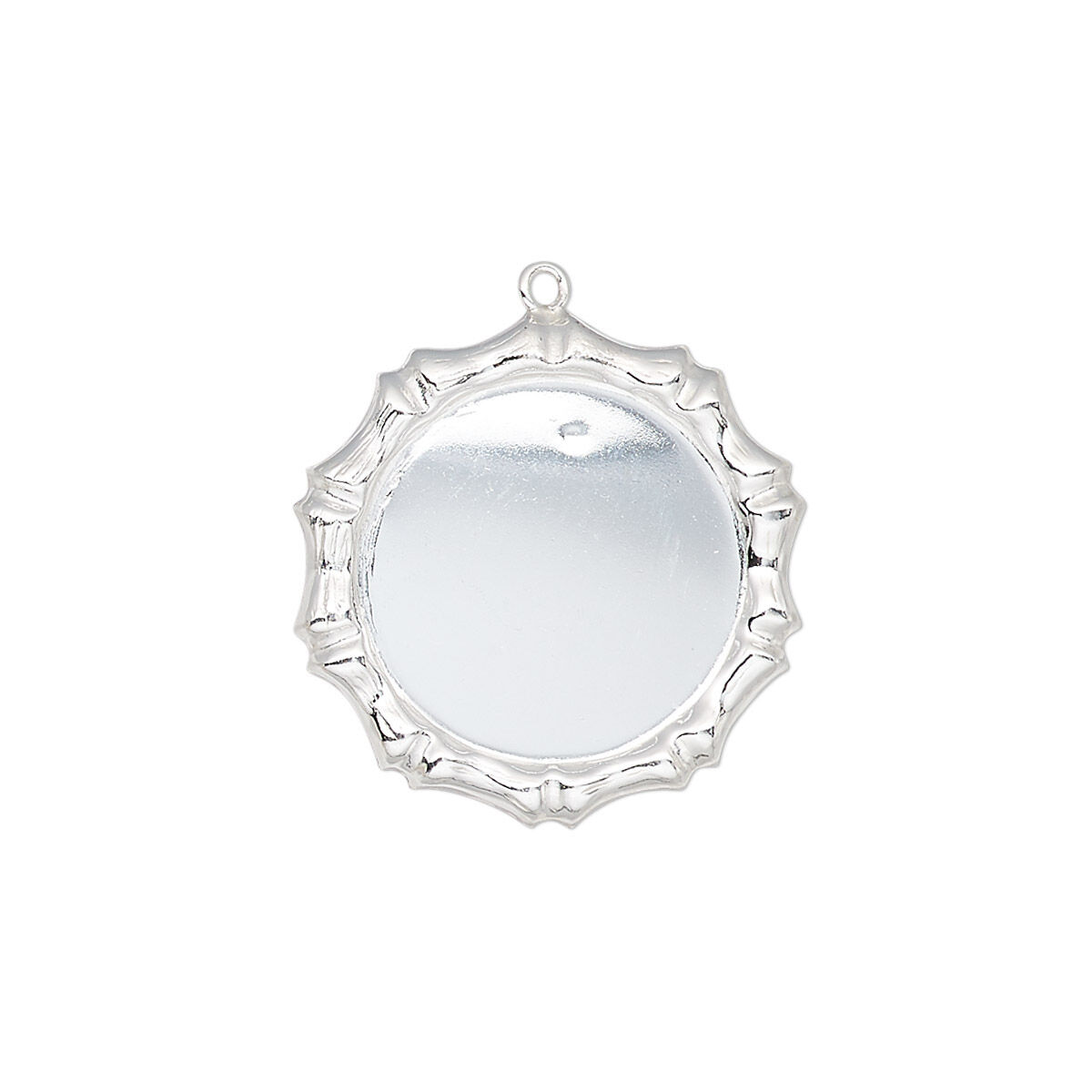 Drop, sterling silver, 21mm single-sided round with bamboo edge design and 16mm round setting. Sold individually.