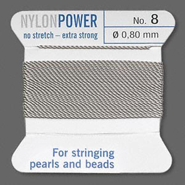 Thread, Griffin, nylon, grey, size #8. Sold per 2-meter card (approximately 78 inches).
