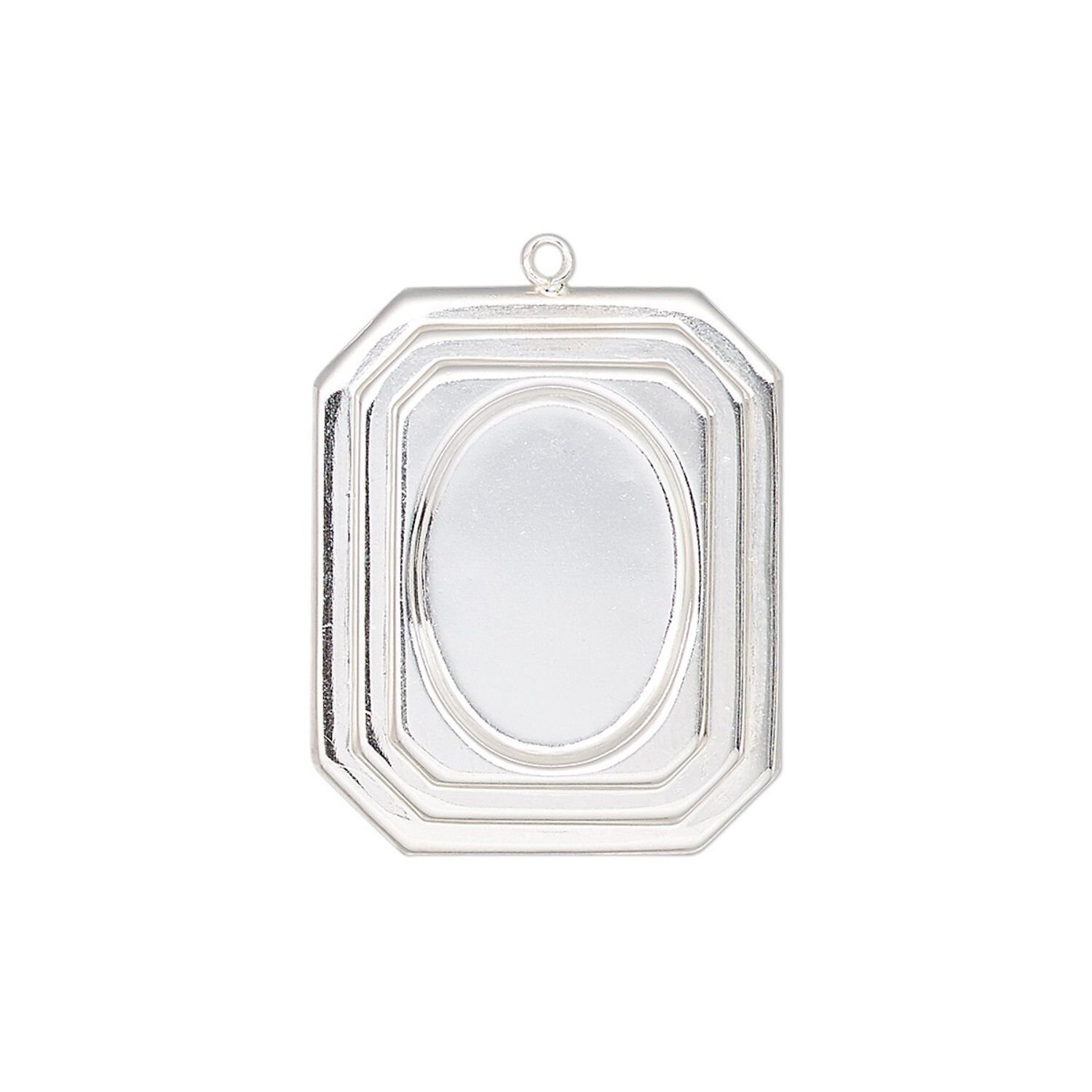 Drop, sterling silver, 23x19mm single-sided rectangle with 14x10mm oval setting. Sold individually.