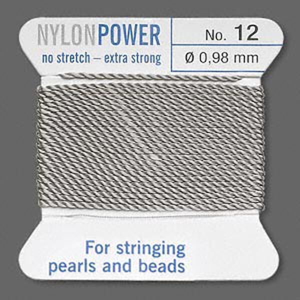 Thread, Griffin, nylon, grey, size #12. Sold per 2-meter card (approximately 78 inches).
