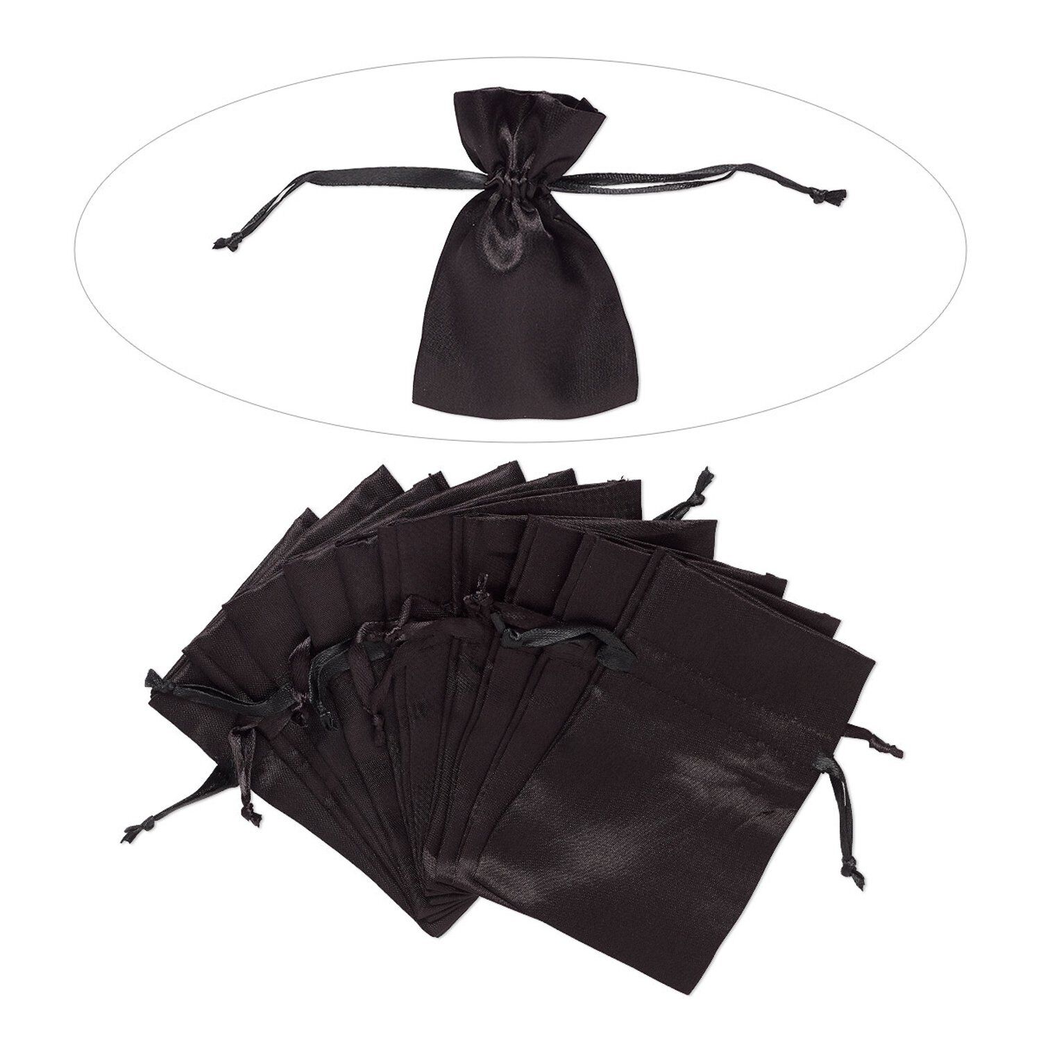Pouch, satin, black, 4-3/4 x 3 inches with drawstring closure. Sold per pkg of 10.