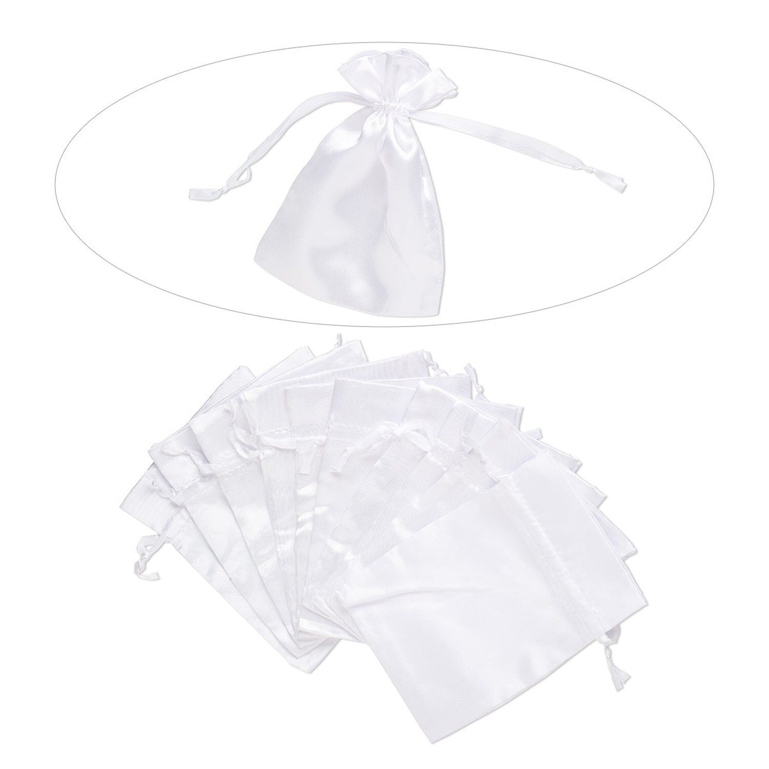 Pouch, satin, white, 6-1/4 x 4-3/4 inches with drawstring closure. Sold per pkg of 10.