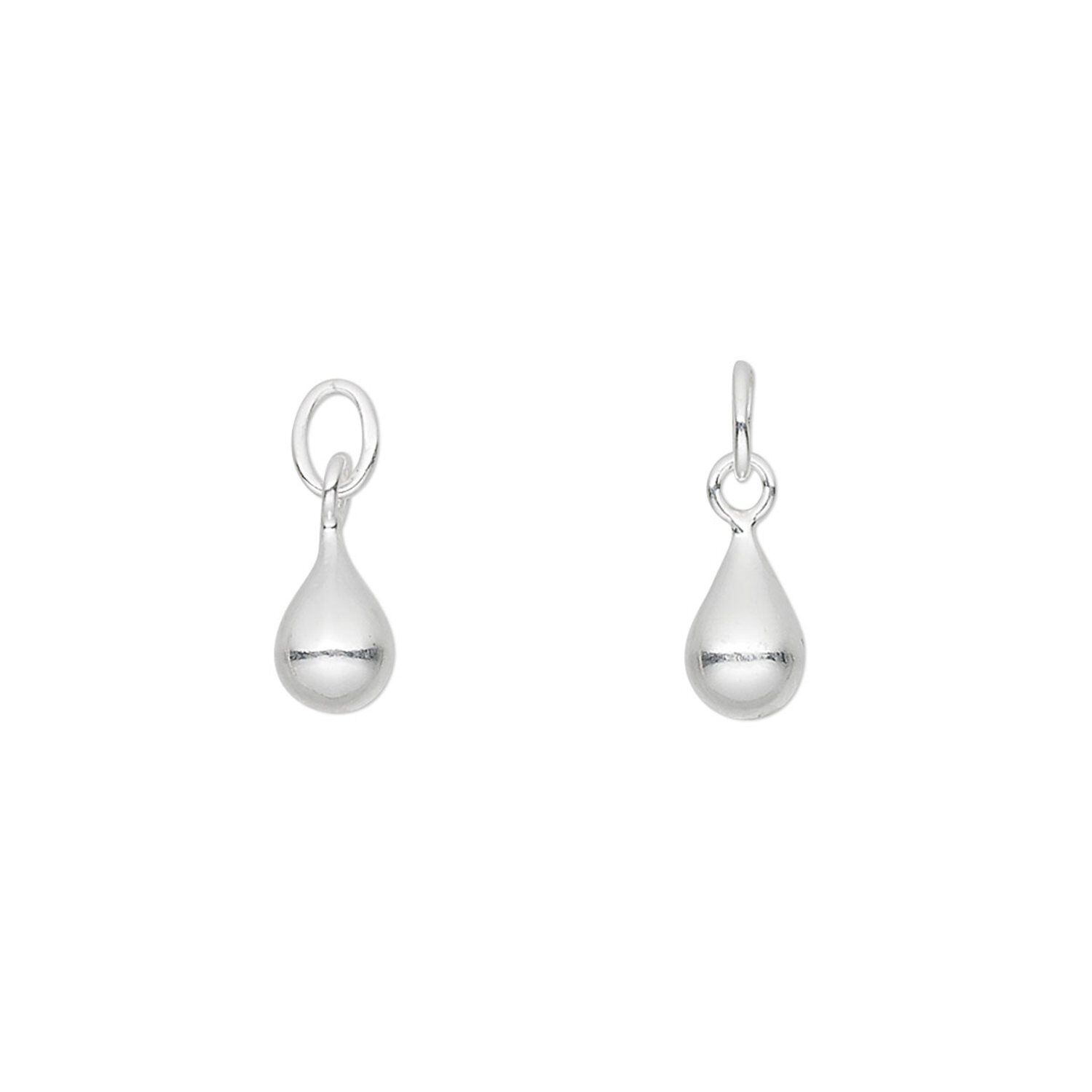 Drop, sterling silver, 8x5mm smooth teardrop and jump ring. Sold per pkg of 4.