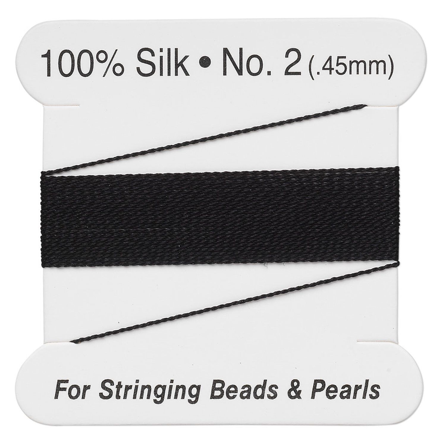 Thread, silk, black, size #2. Sold per 2-meter card.