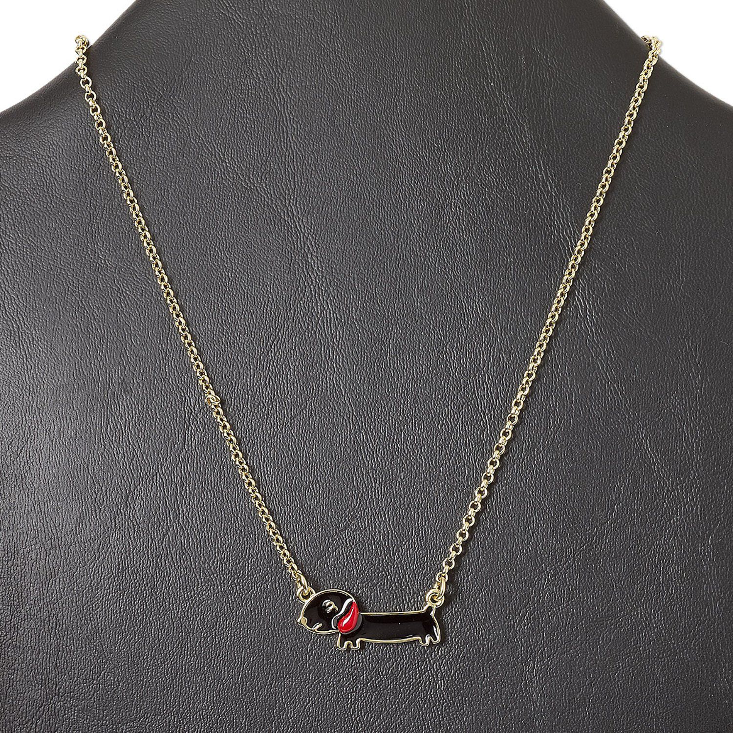 Necklace, gold-finished "pewter" (zinc-based alloy) and enamel, black and red, 29x13mm Daschund, 15" to 16" necklace with lobster claw clasp and 3-inch extender chain. Sold individually.