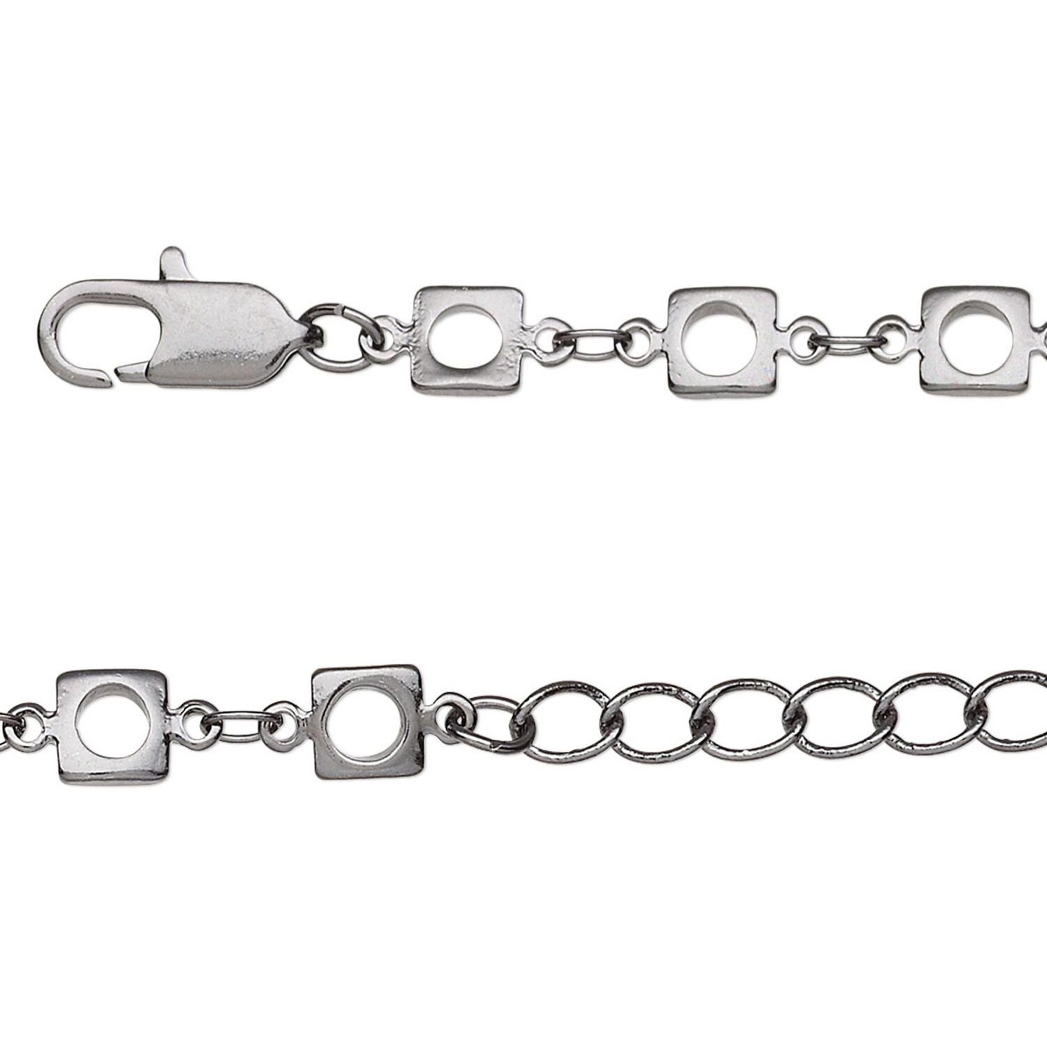 Score a hole in one with this round hole/square link chain. Ready-to-wear brass chain features hole-in-square and oval links with a matching lobster claw clasp and 1-1/4 inch extender chain to adjust length and drape. Listed length includes clasp.