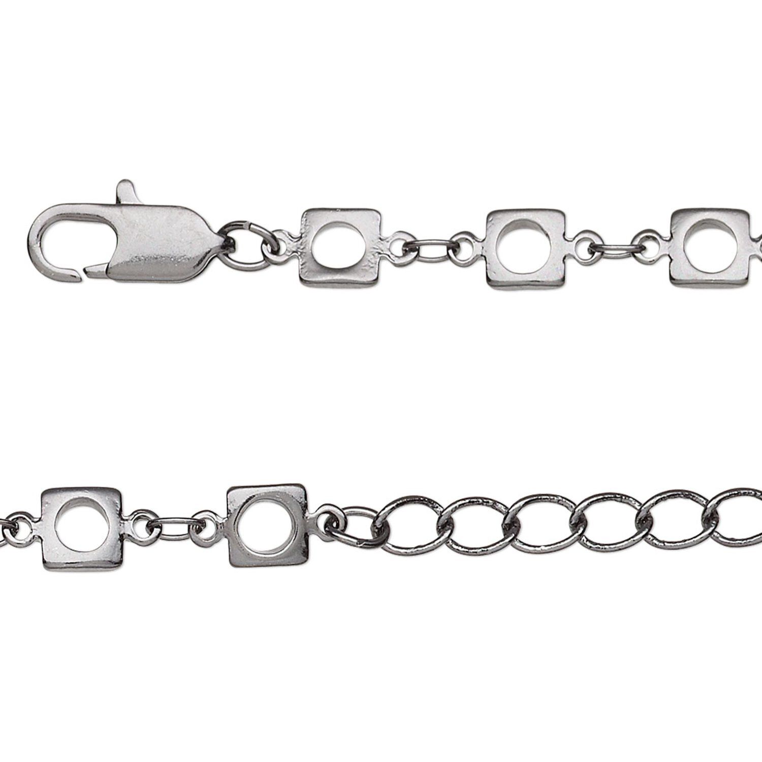 Chain, gunmetal-finished brass, 3x2mm oval and 5x5mm open square, 36 inches with 1-1/4 inch extender chain and lobster claw clasp. Sold individually.