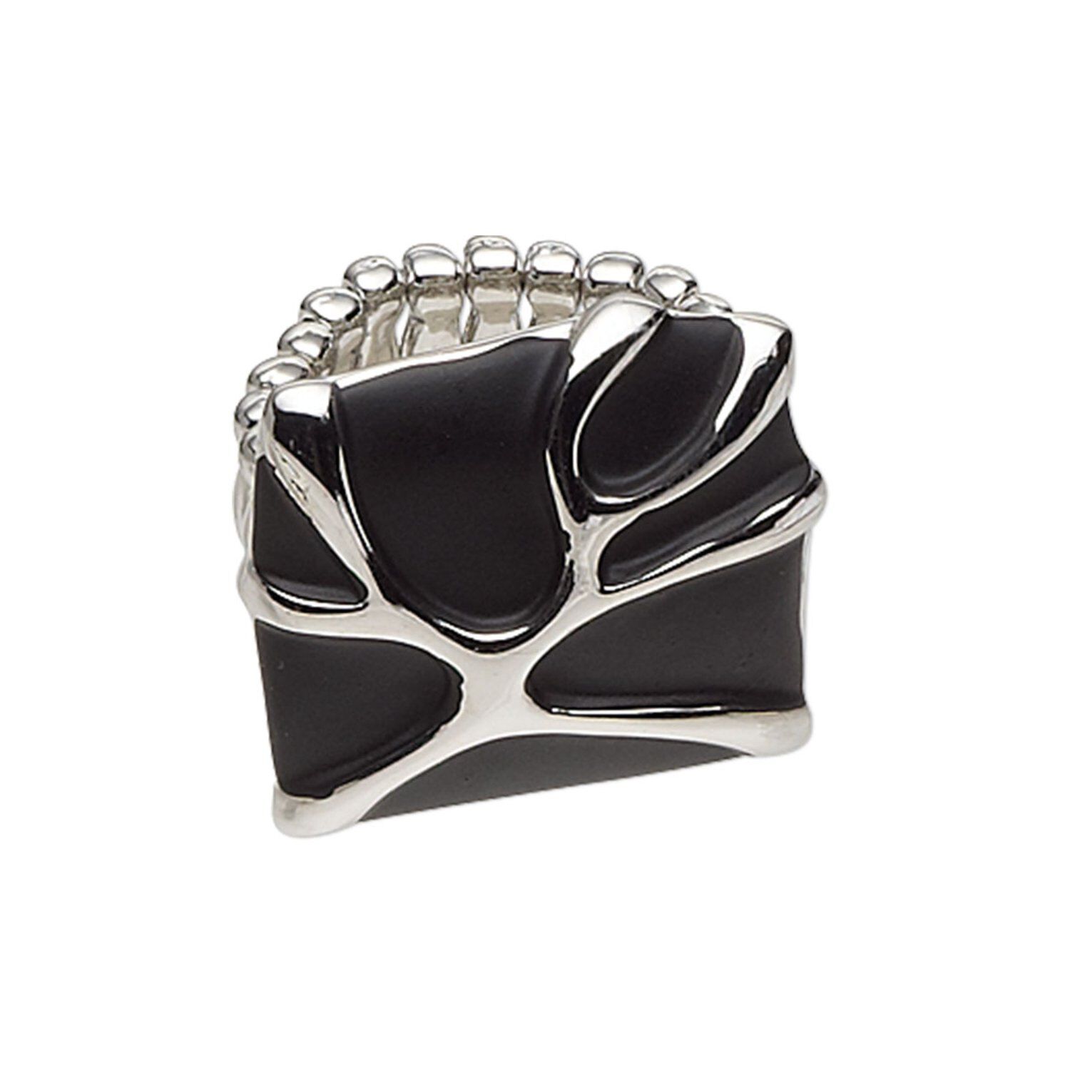 Ring, stretch, enamel and rhodium-plated "pewter" (zinc-based alloy), matte black, 24x23mm square, size 7. Sold individually.