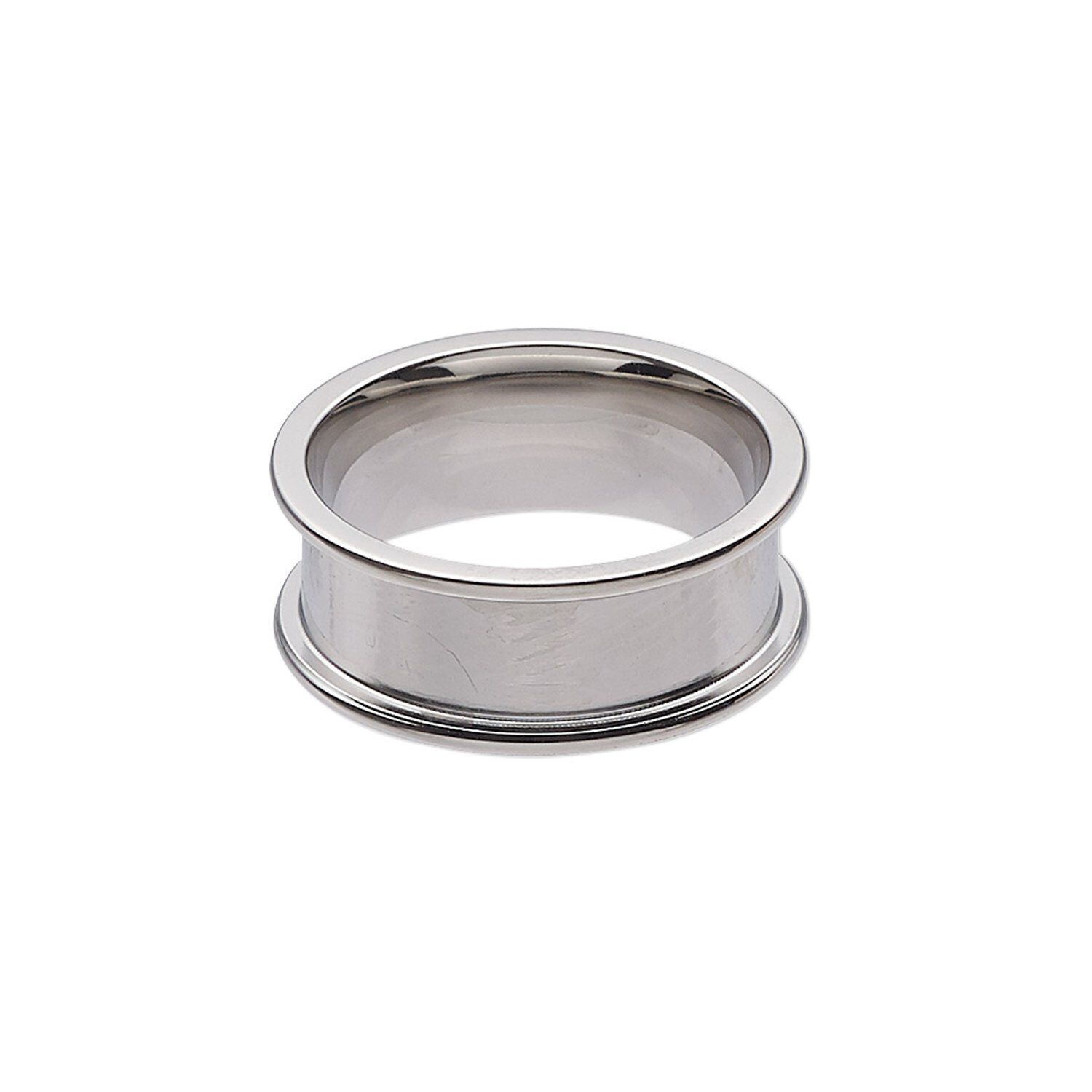 Ring, stainless steel, 8mm wide band with 5.9mm wide channel, size 7. Sold individually.
