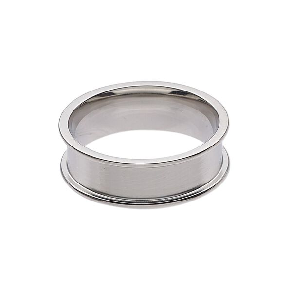 Ring, stainless steel, 8mm wide band with 5.9mm wide channel, size 12. Sold individually.