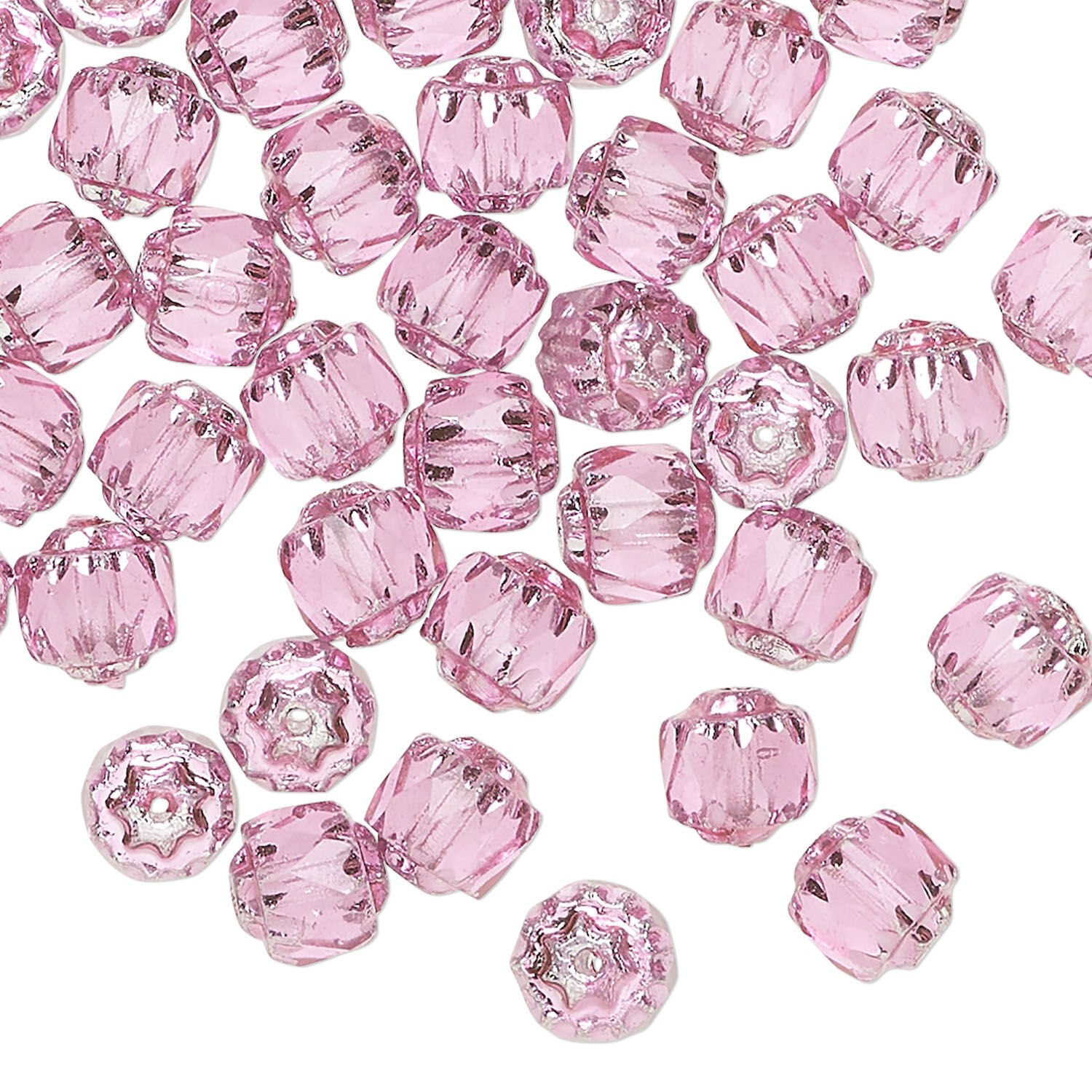 Bead 1pkg60, Czech glass, pink and metallic pink, 6mm round cathedral.