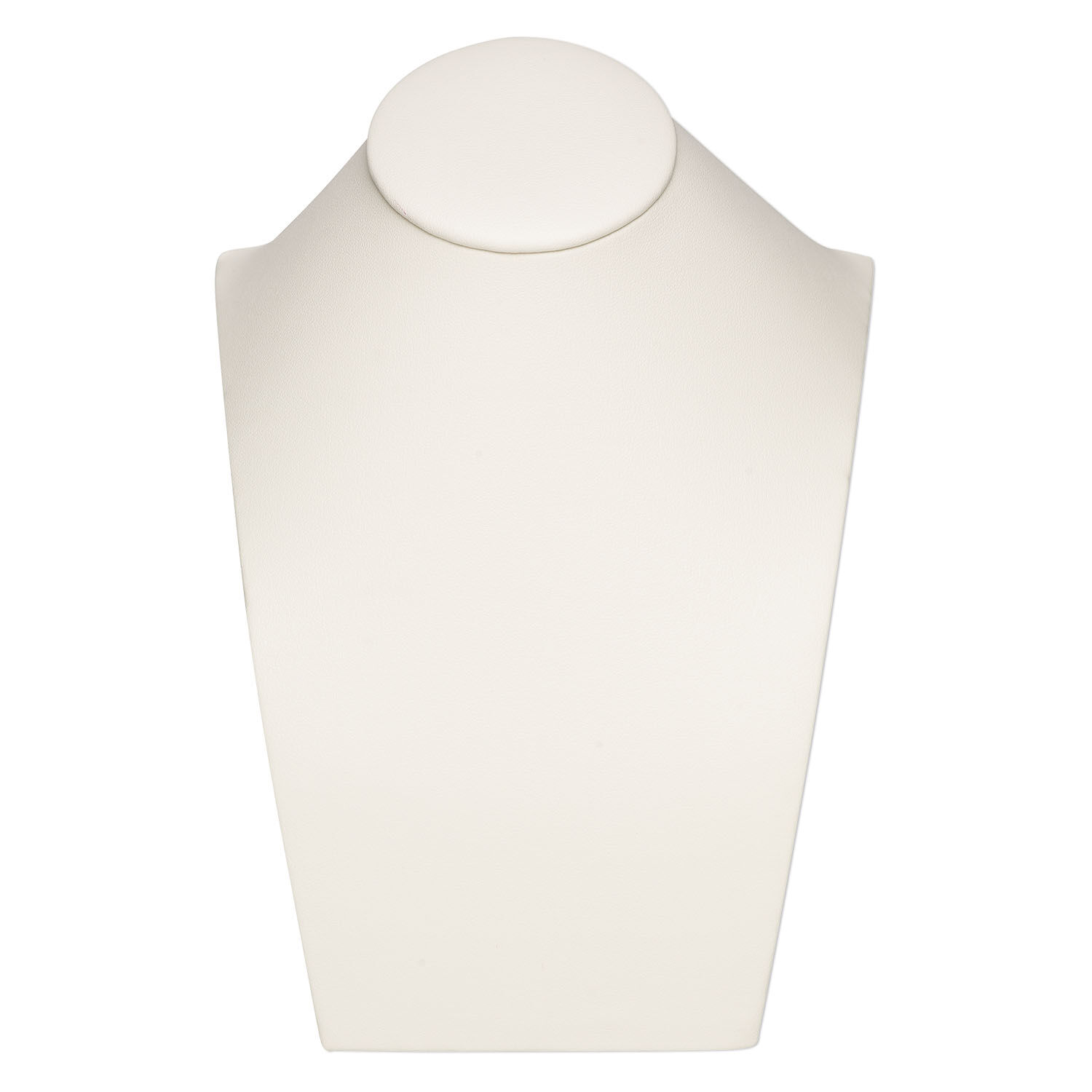 Upright décolleté-style leatherette necklace display in a cream color. Standing 7 inches in height, its compact design makes it ideal for smaller display cases and makes it easy for transport. VELCRO® tab on the back makes it easy to secure necklaces to the display.